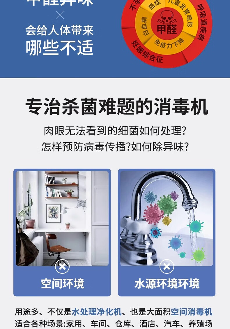 Dekebang water treatment ozone generator industrial commercial sterilization school food factory farm laboratory packaging pure water factory swimming pool water purification decolorization deodorization deodorization machine water and air dual-use 10g (enhanced version)