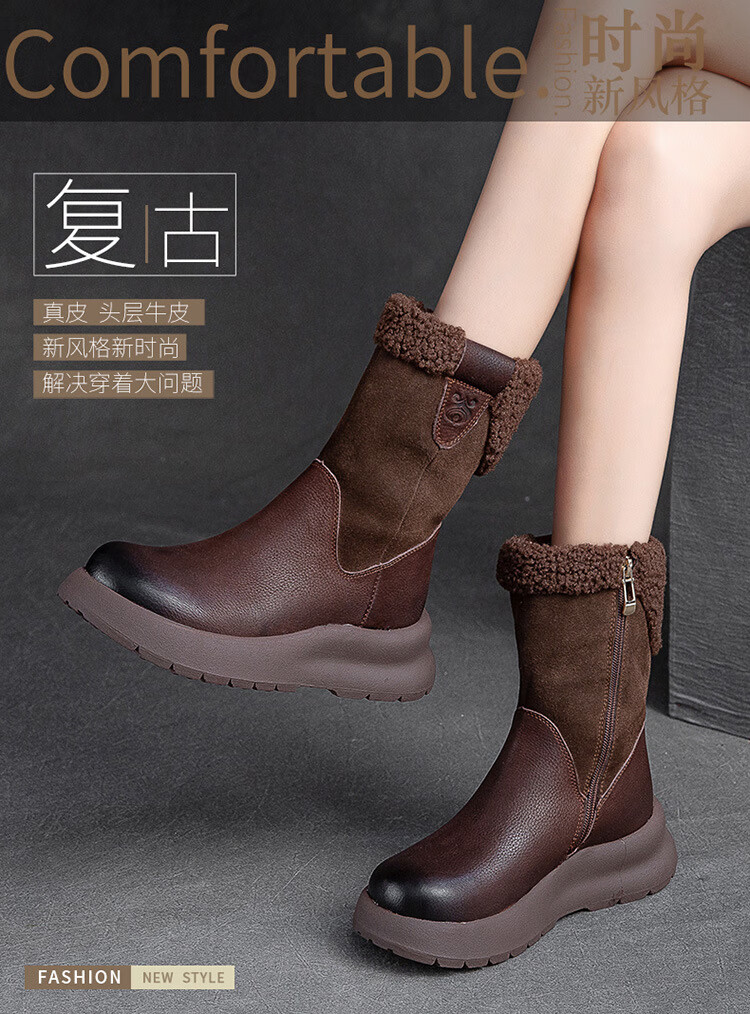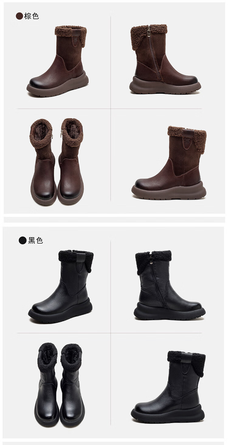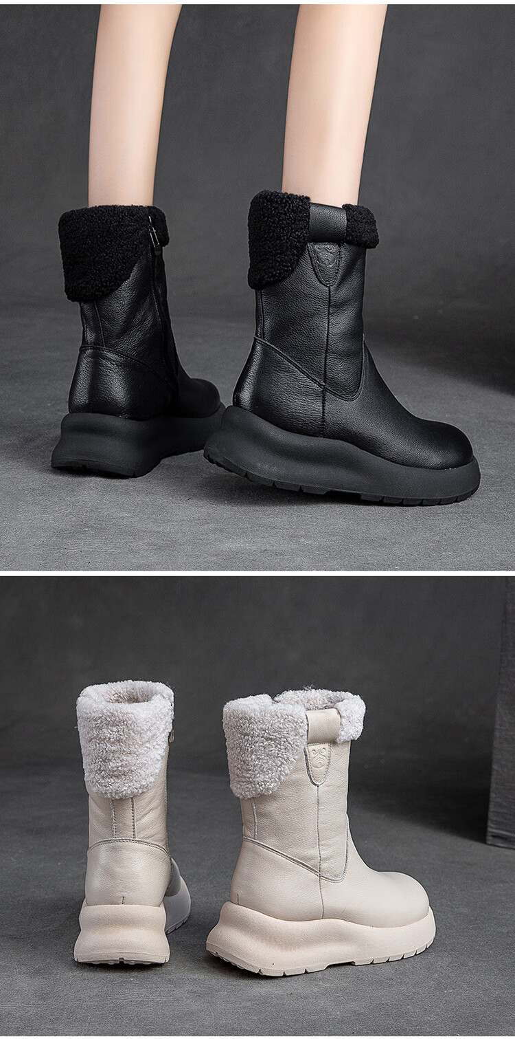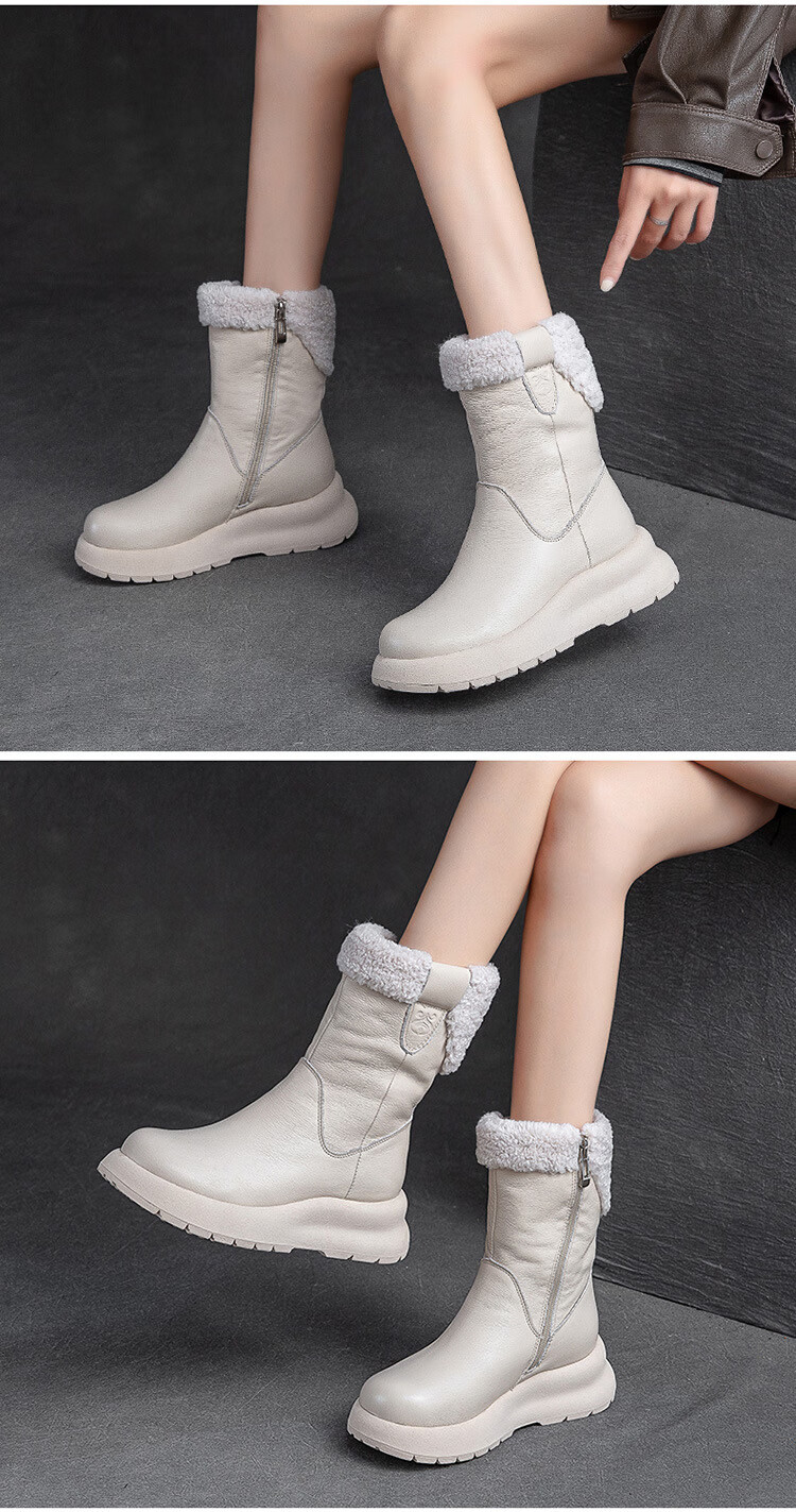 OLJ luxury high-end brand women's boots mid-calf snow boots 2025 new style velvet thick-soled short boots simple casual boots off-white 37