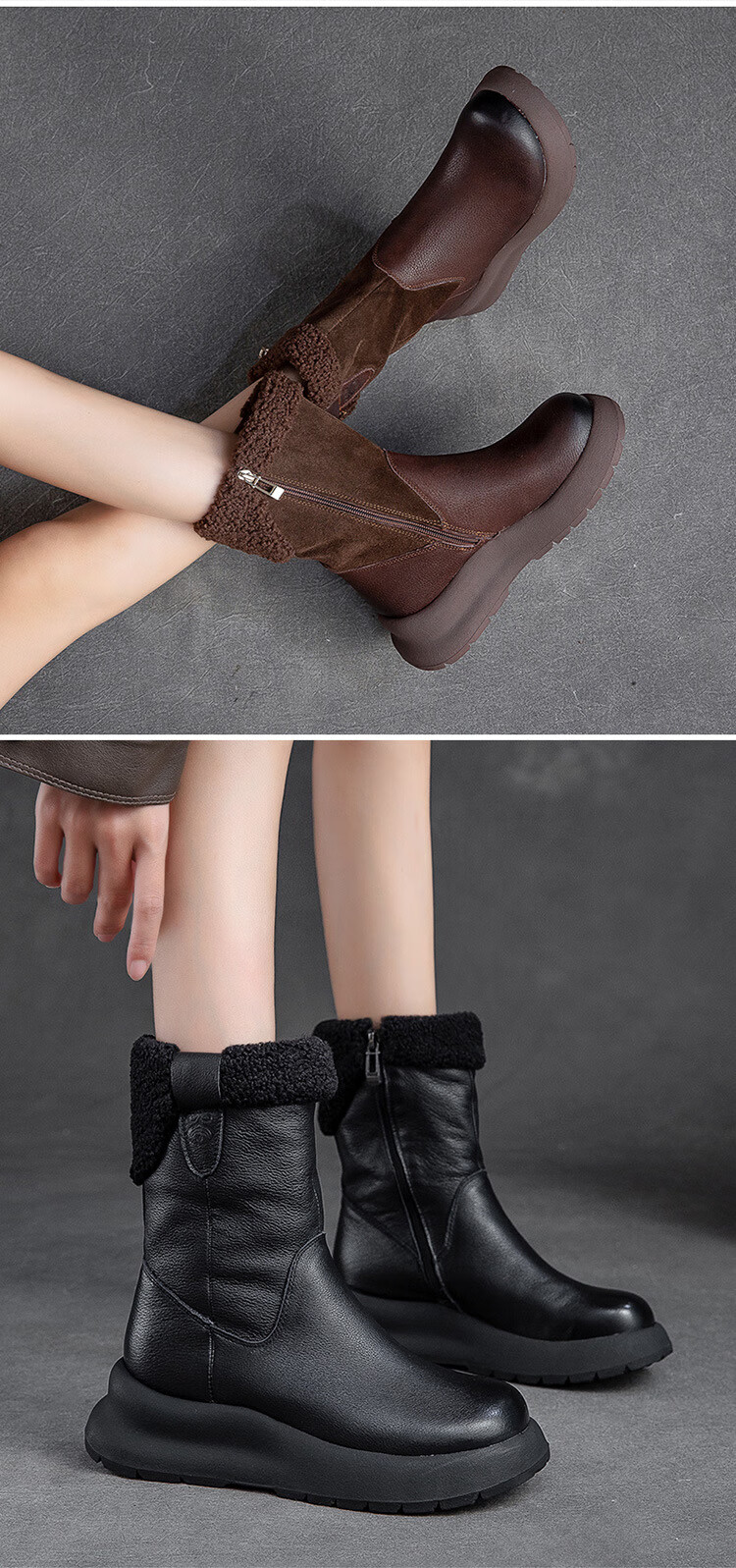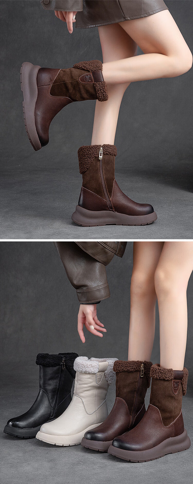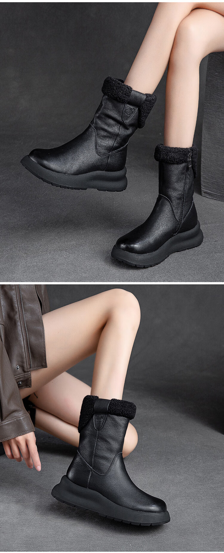 OLJ luxury high-end brand women's boots mid-calf snow boots 2025 new style velvet thick-soled short boots simple casual boots off-white 37