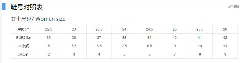 China (cm) 36 - 37 38 - 39 40 - 42 43 - 44 45 - 47