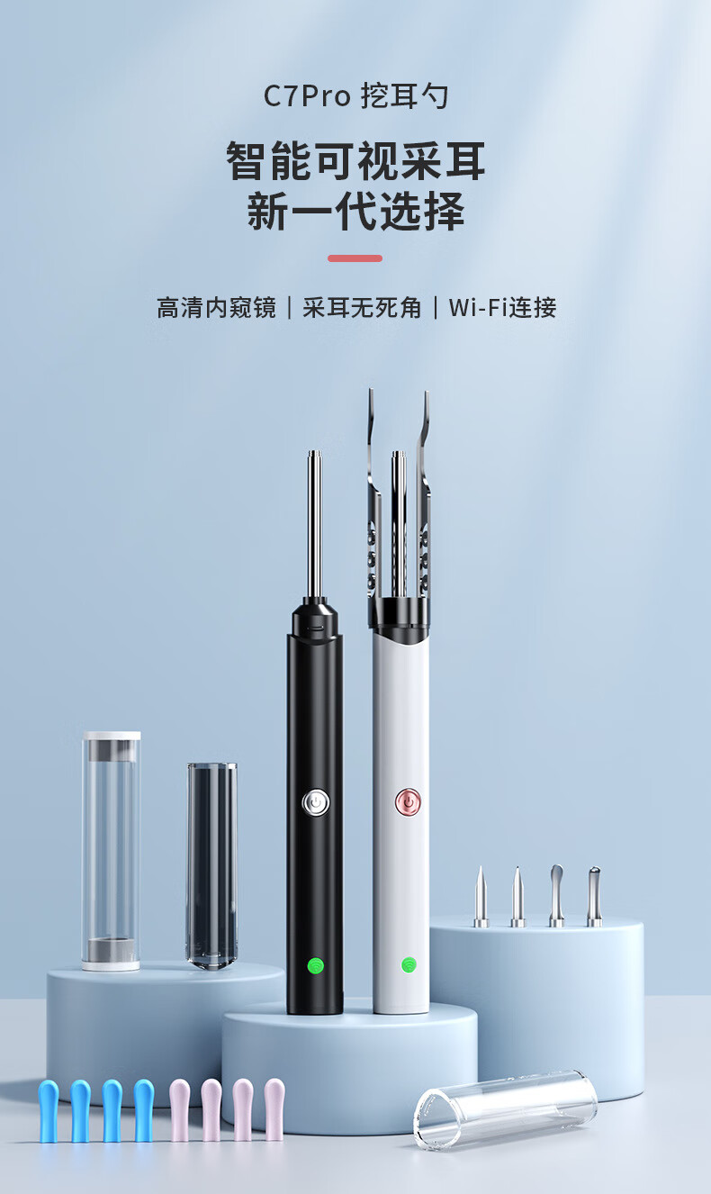 Shantou Lincun Household Visual Ear Picking Spoon Ultra-HD Luminous Endoscope Smart Ear Picking Stick High Ear Picking Tool with Light High-end Smart C9 White Pro