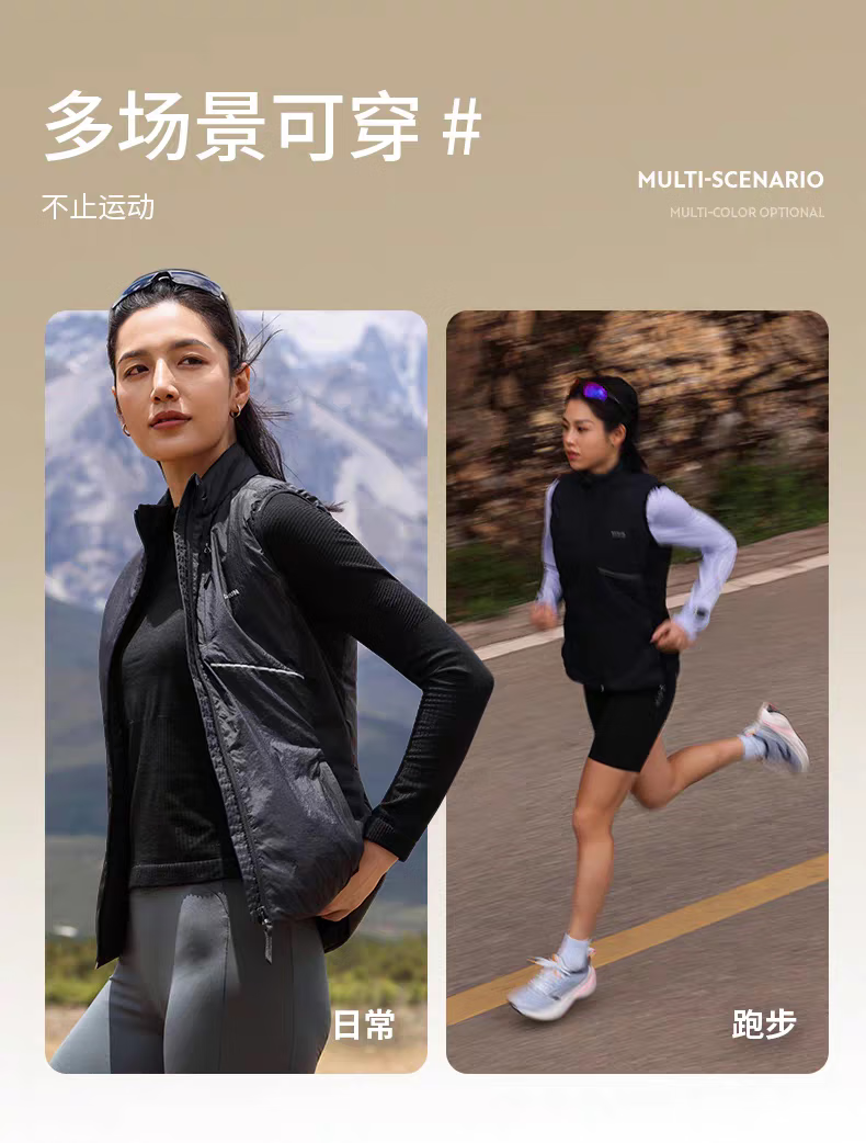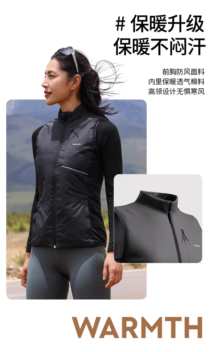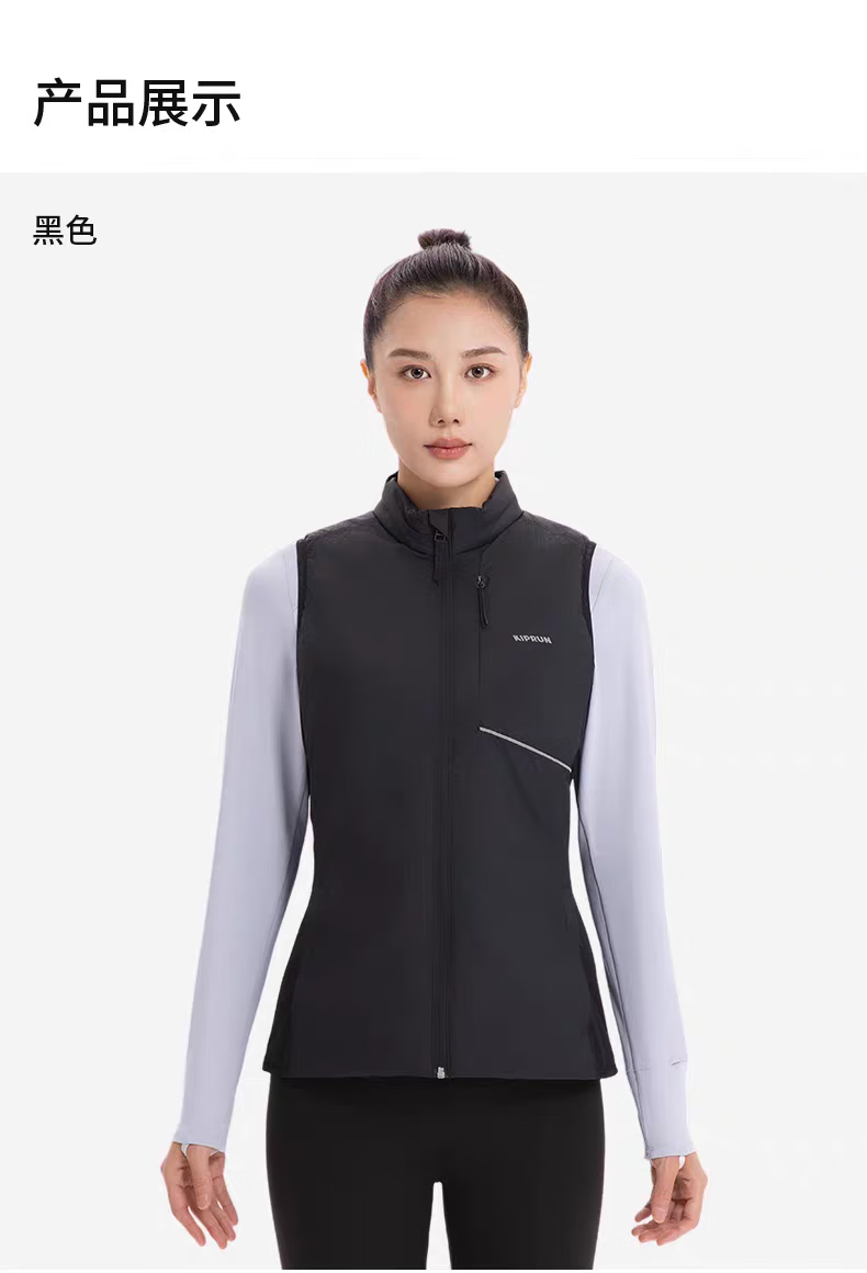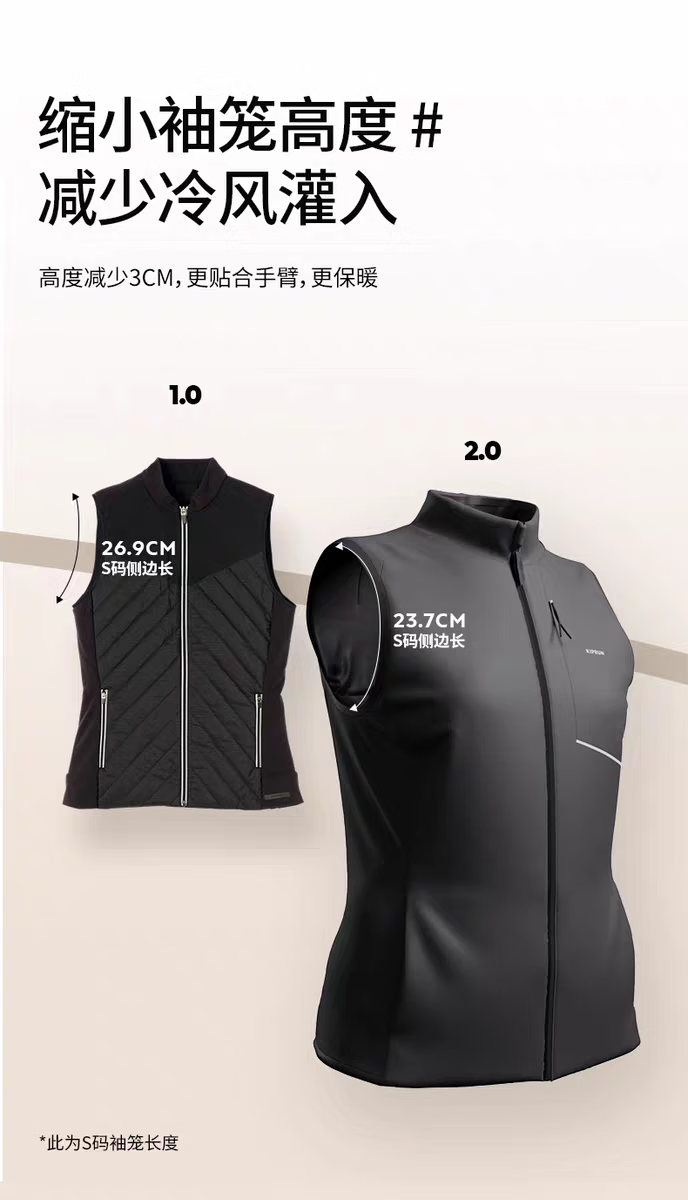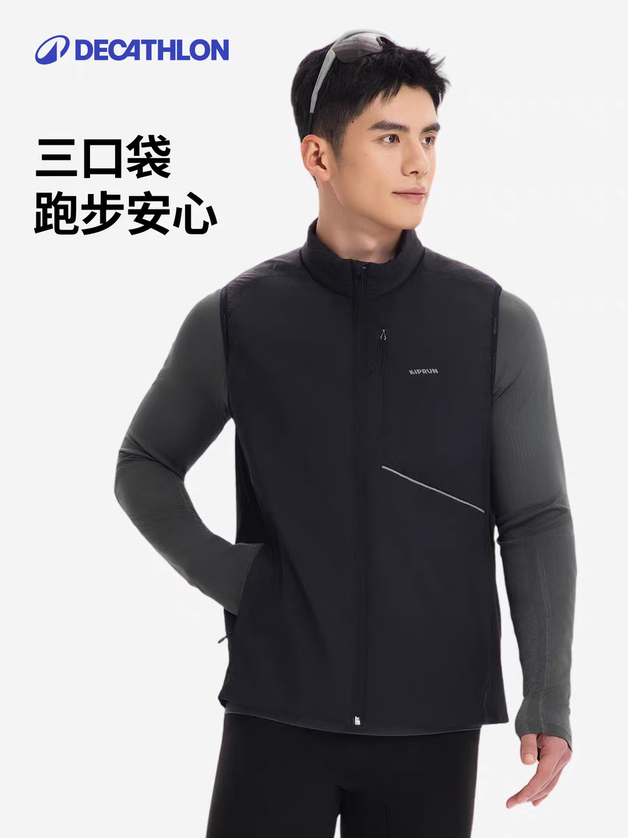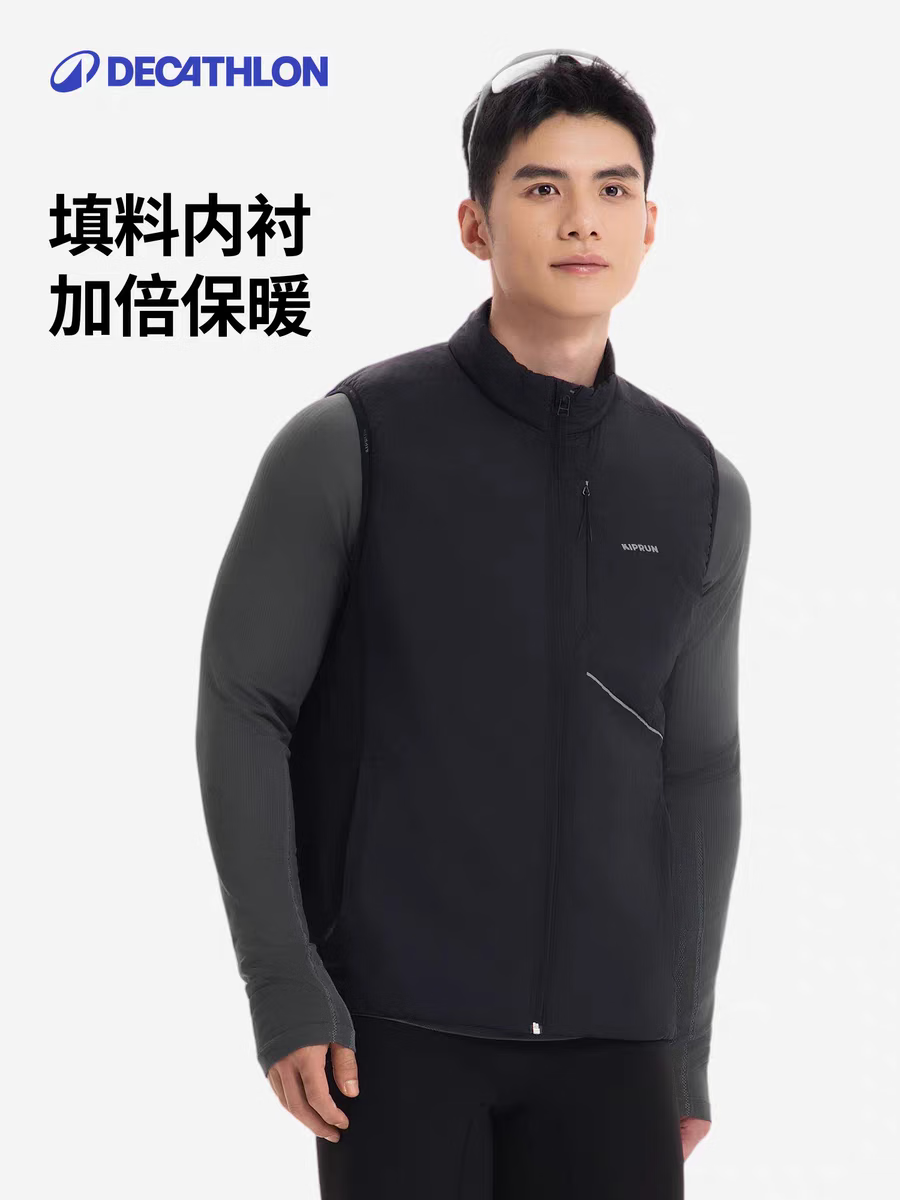 Decathlon (DECATHLON) Running Sports Vest Women's Autumn Outdoor Cycling Fitness Sleeveless Zipper Warm Cotton Vest SAX1 Official Flagship Men's Black S