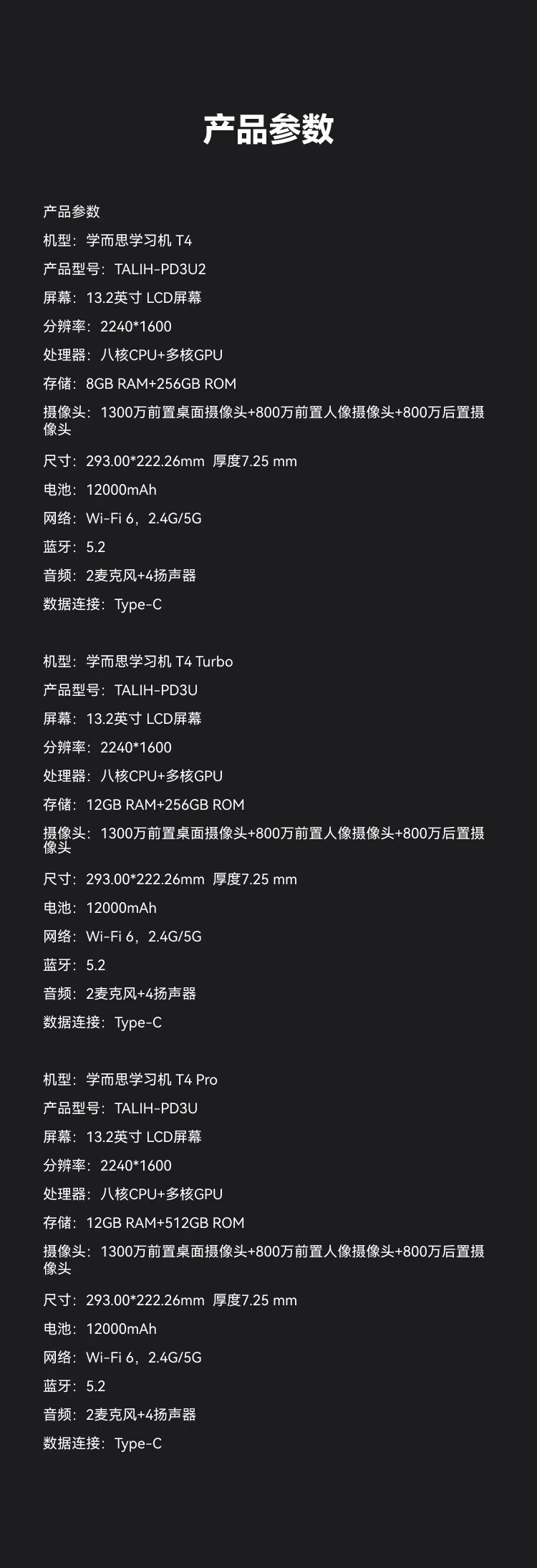 Xueersi learning machine P4 S4 T4 pro2026 heavy new product eye protection large screen new generation new curriculum standard full school period primary school high school enlightenment nine chapters synchronized large model T4pro learning machine keyboard cover 13.2 inches 12+512G