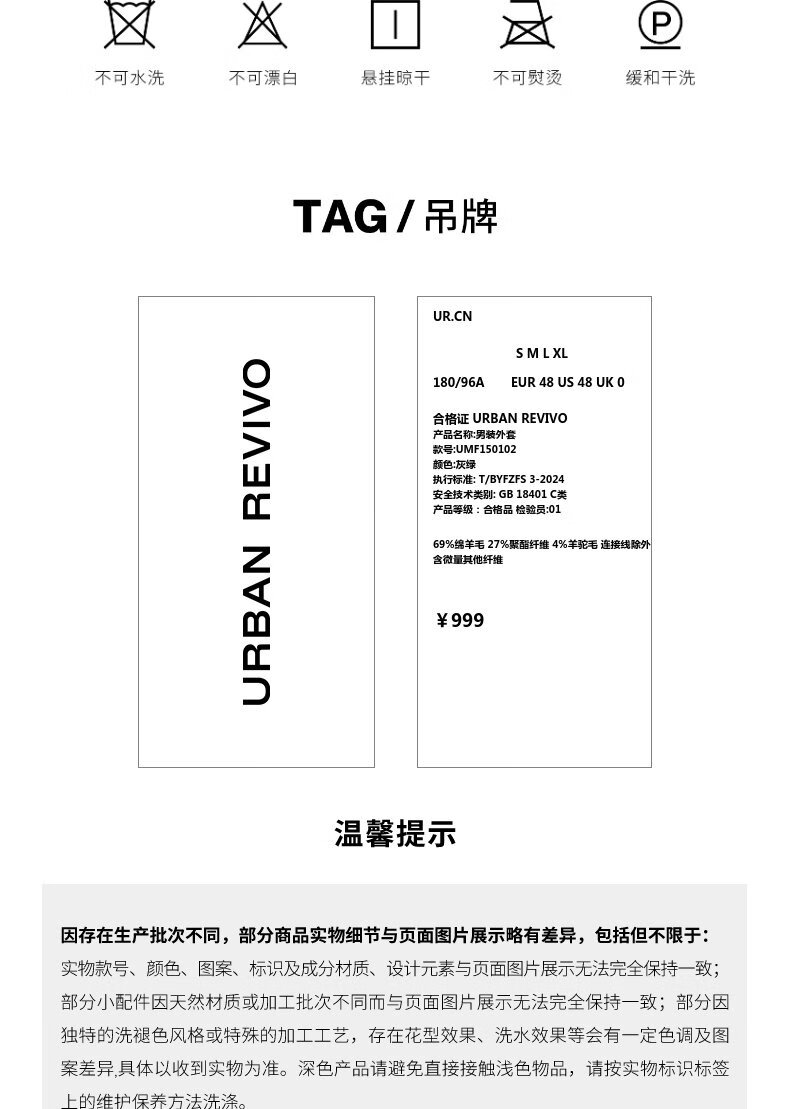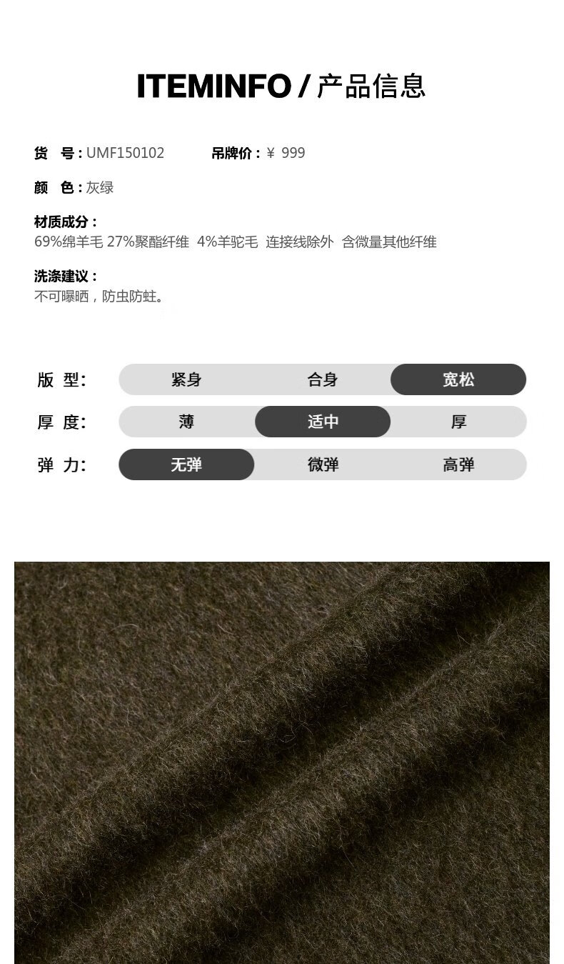 UR new winter men's casual amber streamer lapel coat UMF150102 gray green S