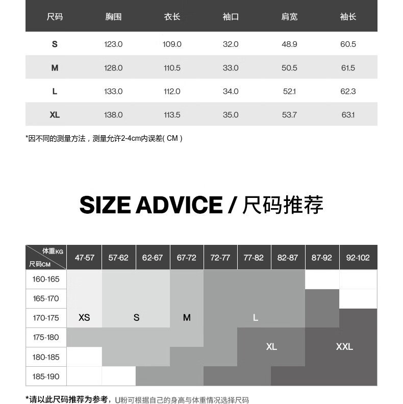 China (cm) 165 / 88-90 170 / 96-98 175 / 108-110 180 / 118-122 185 / 126-130