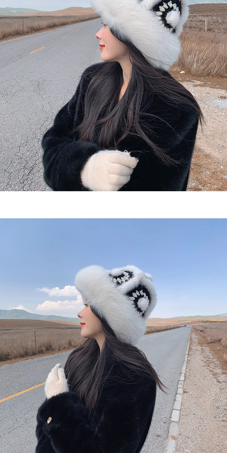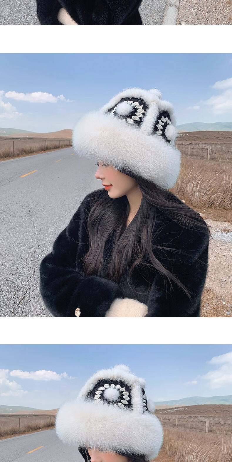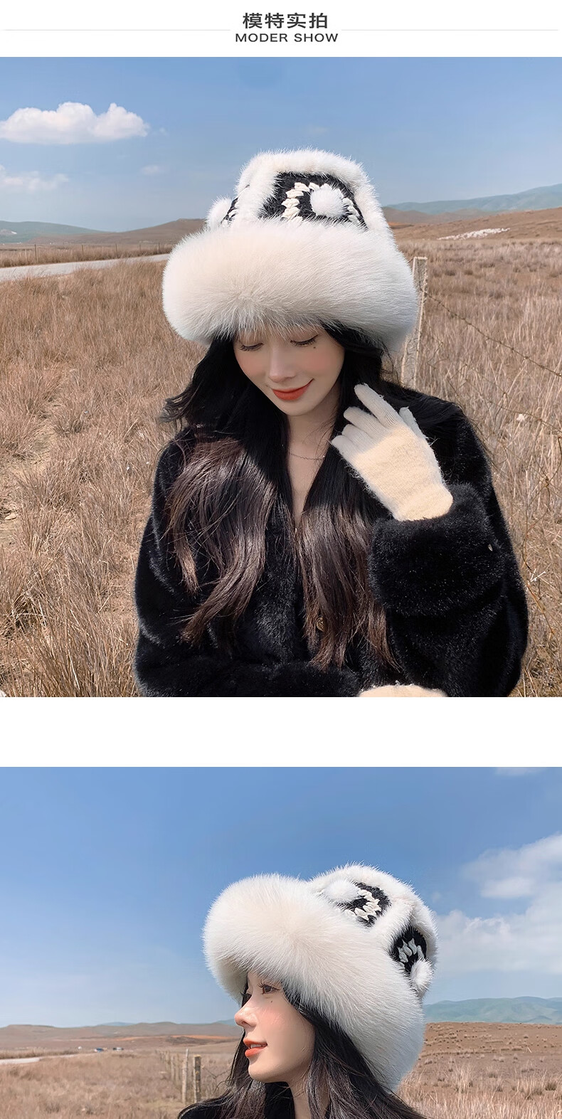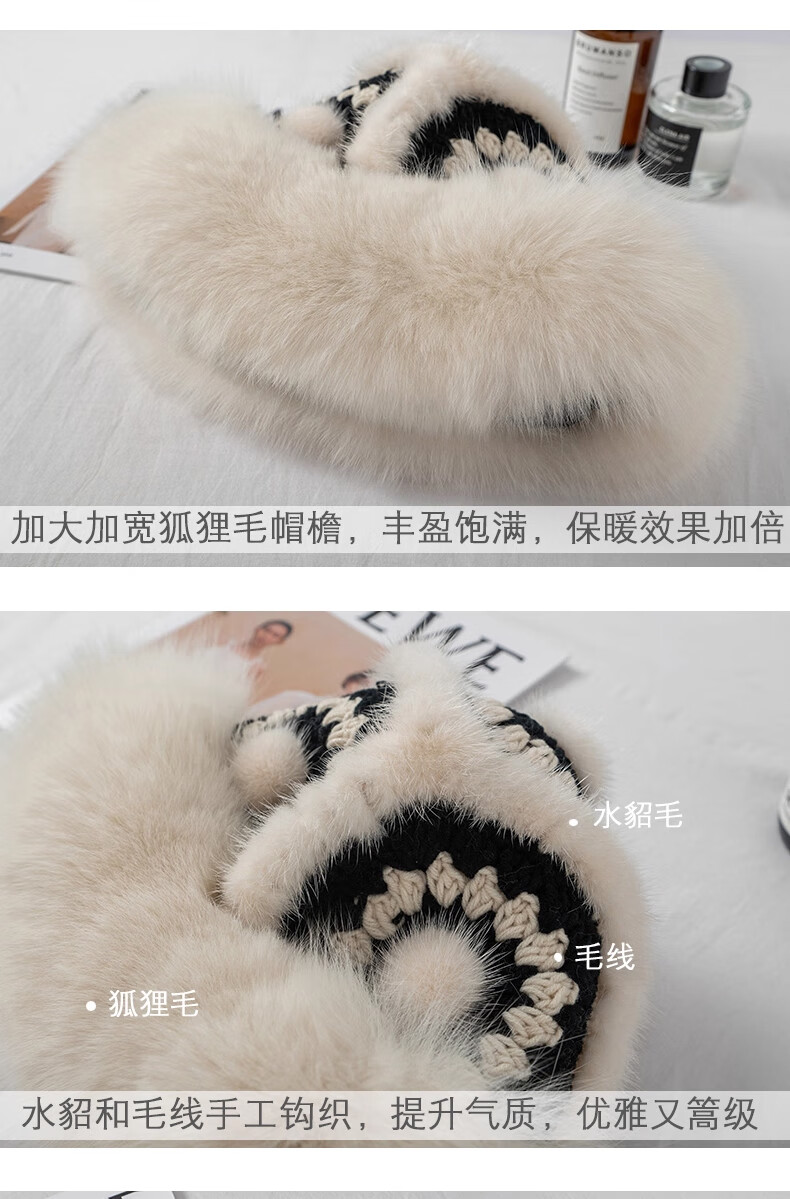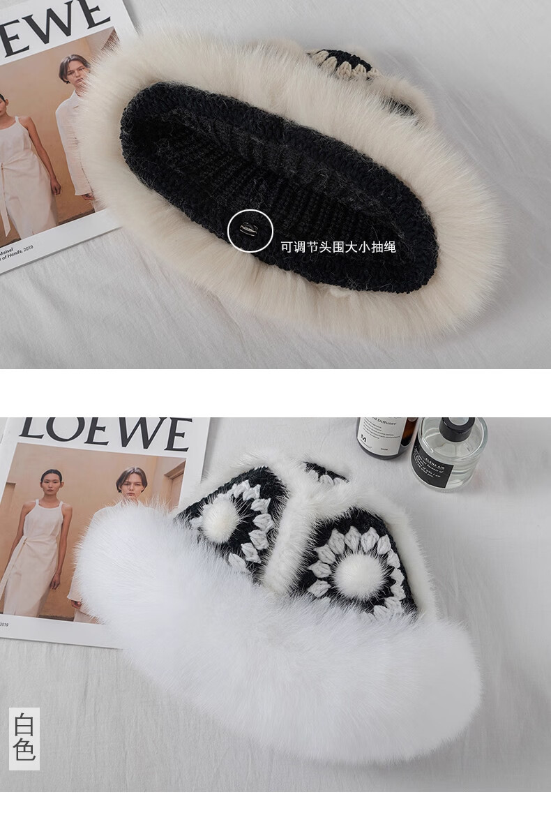 Yinghui's new temperament mink fisherman hat for women in autumn and winter, warm fox fur hat, cute face-showing small real fur lion hat, off-white, one size fits all