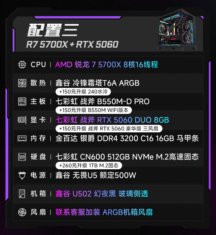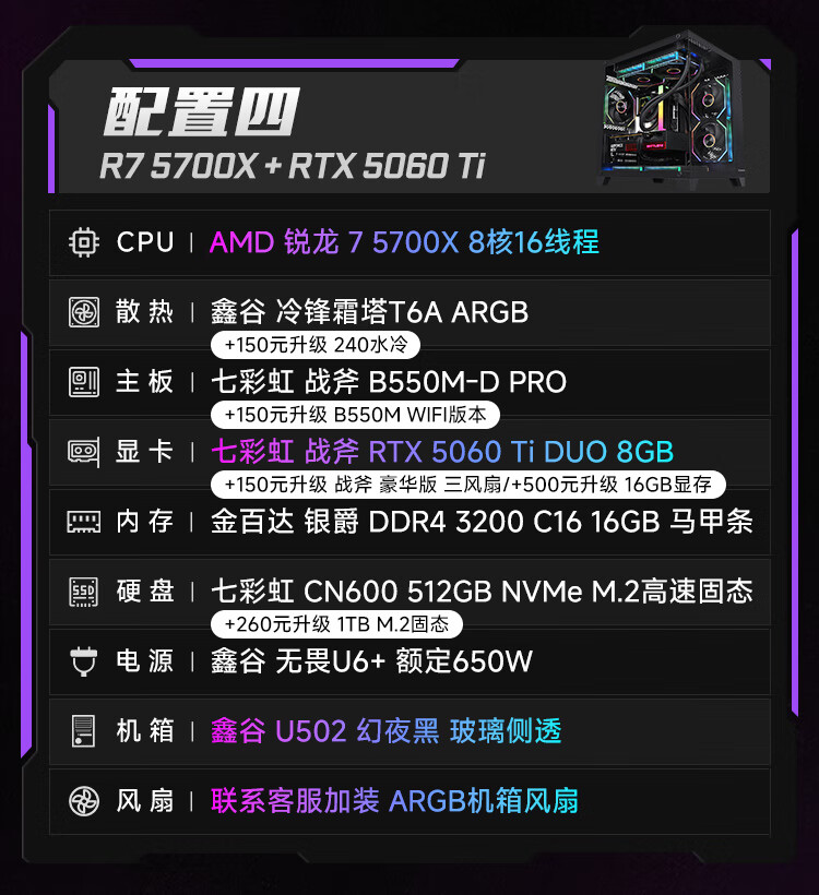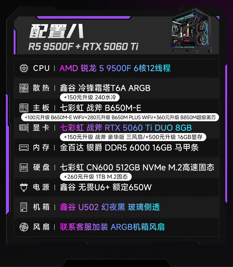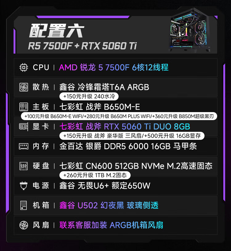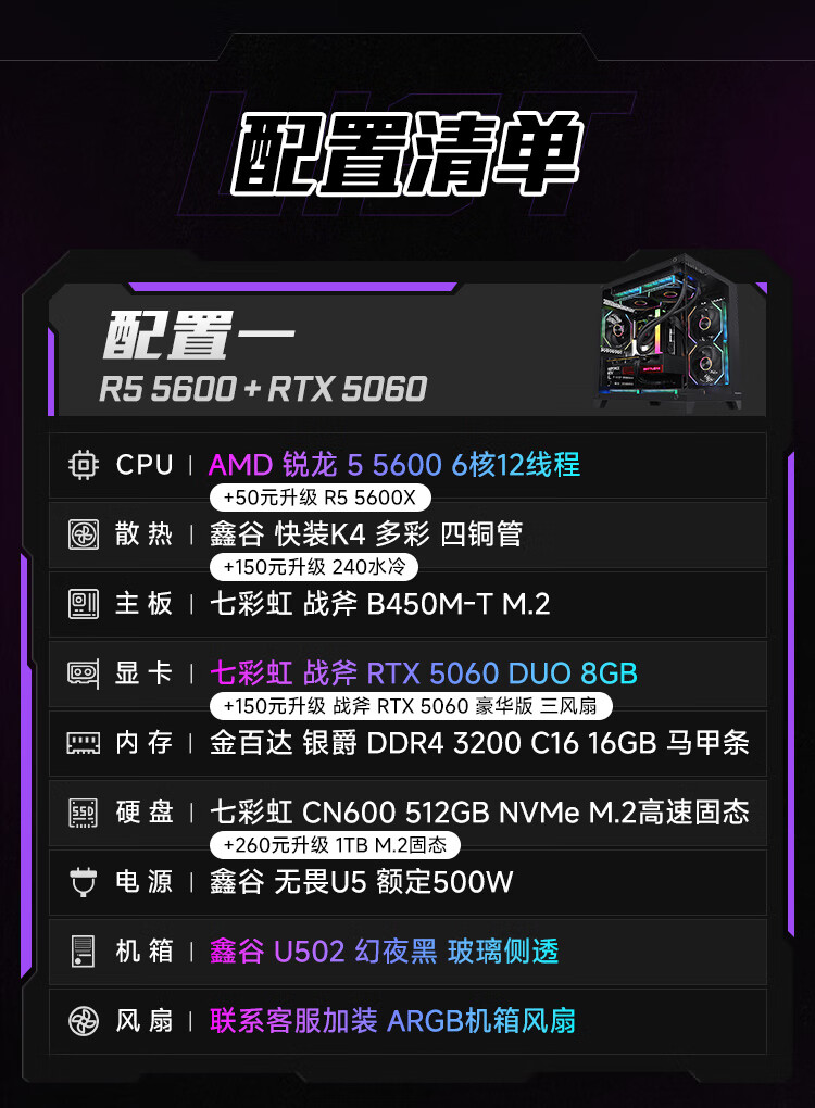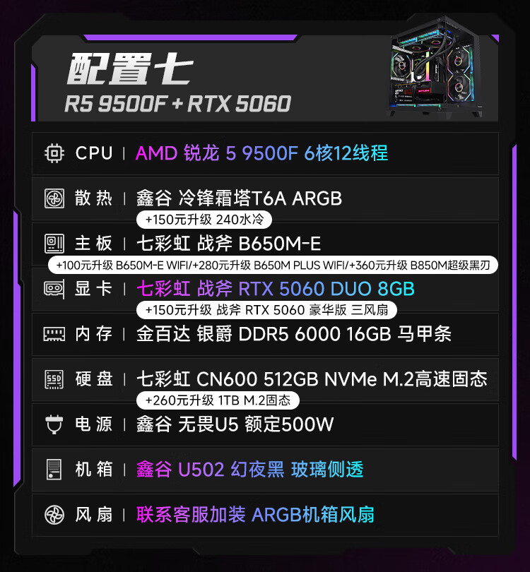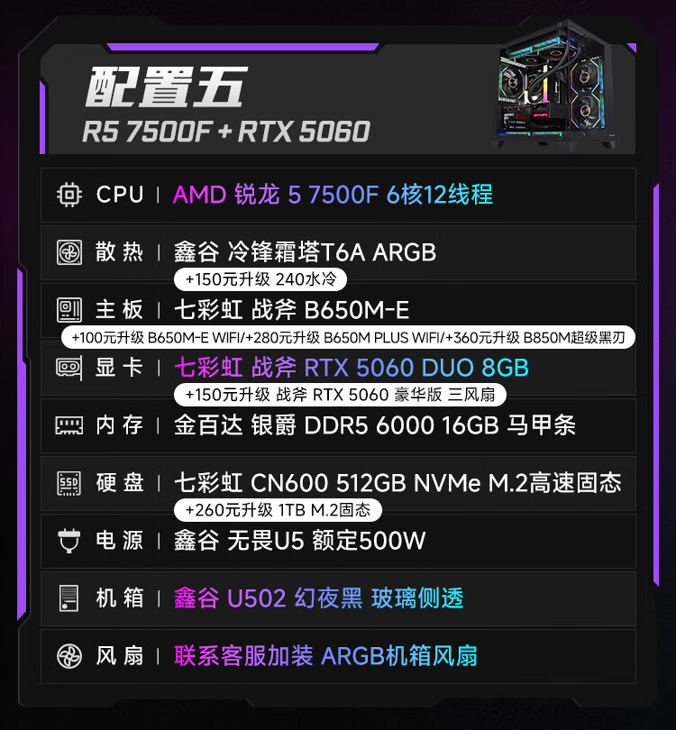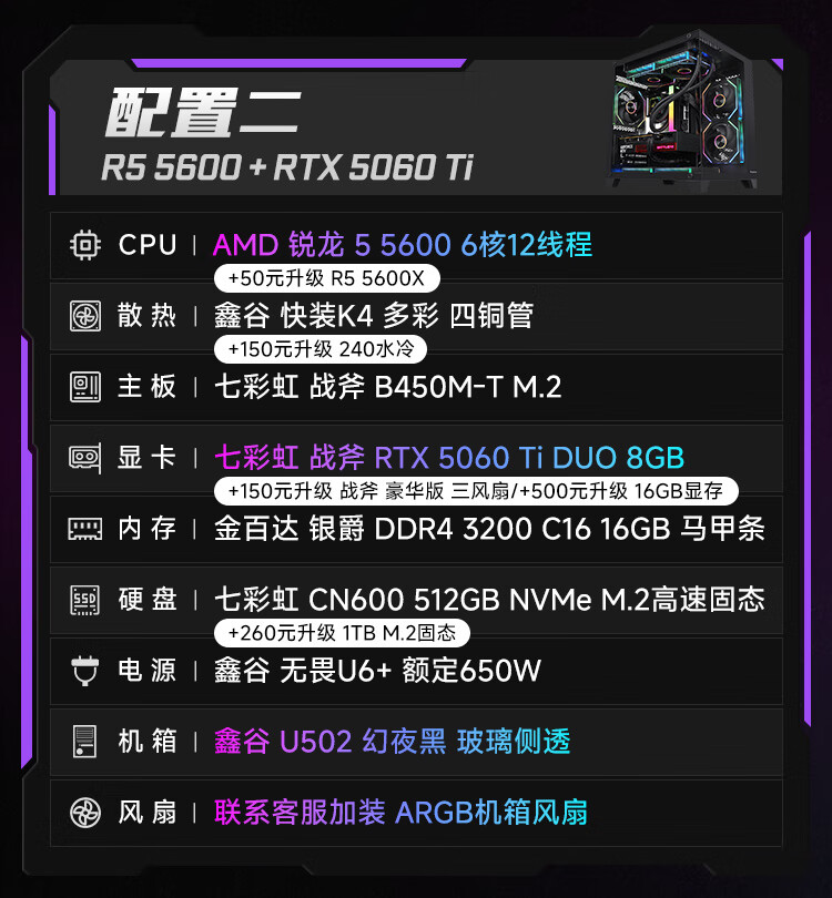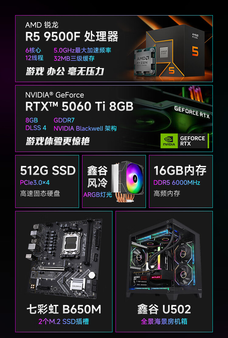 Colorful Ryzen R5 5600/5700X/7500F/9500F/5060/5060Ti assembled computer desktop host DIY e-sports game console sea view room with two 5600+5060ti+16G