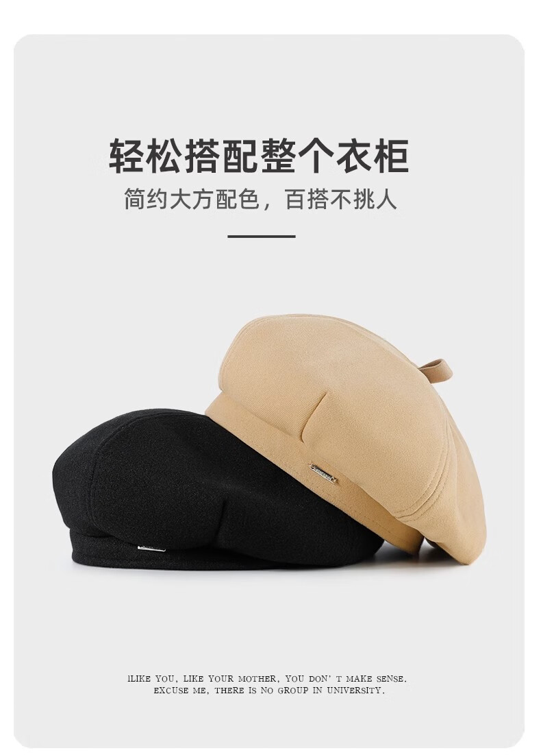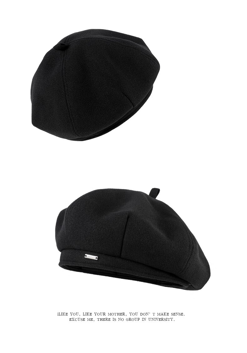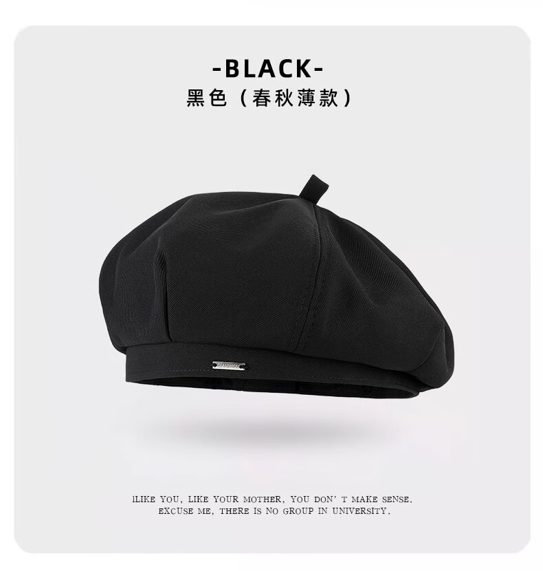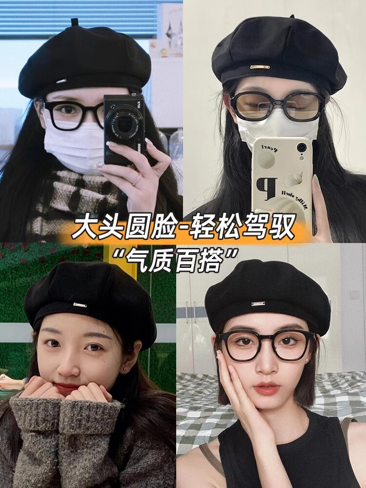 Catman Beret Women's Autumn and Winter Korean Version Versatile Painter Hat Japanese Retro Big Head Circumference Showing Face Small Bud Hat Black One Size 55-59cm