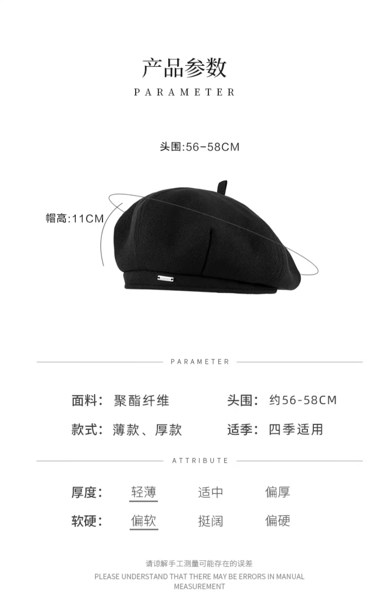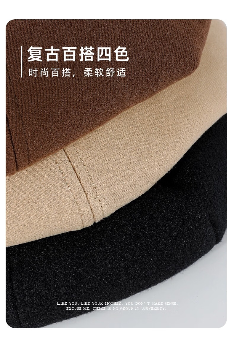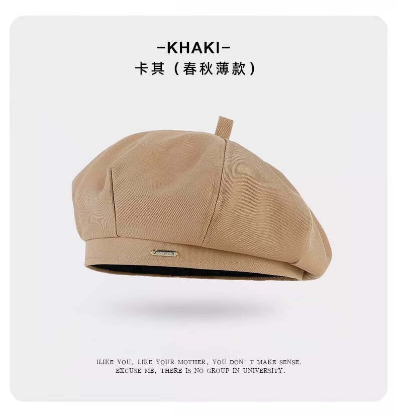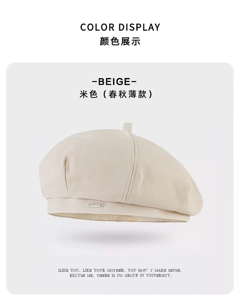 Catman Beret Women's Autumn and Winter Korean Version Versatile Painter Hat Japanese Retro Big Head Circumference Showing Face Small Bud Hat Black One Size 55-59cm
