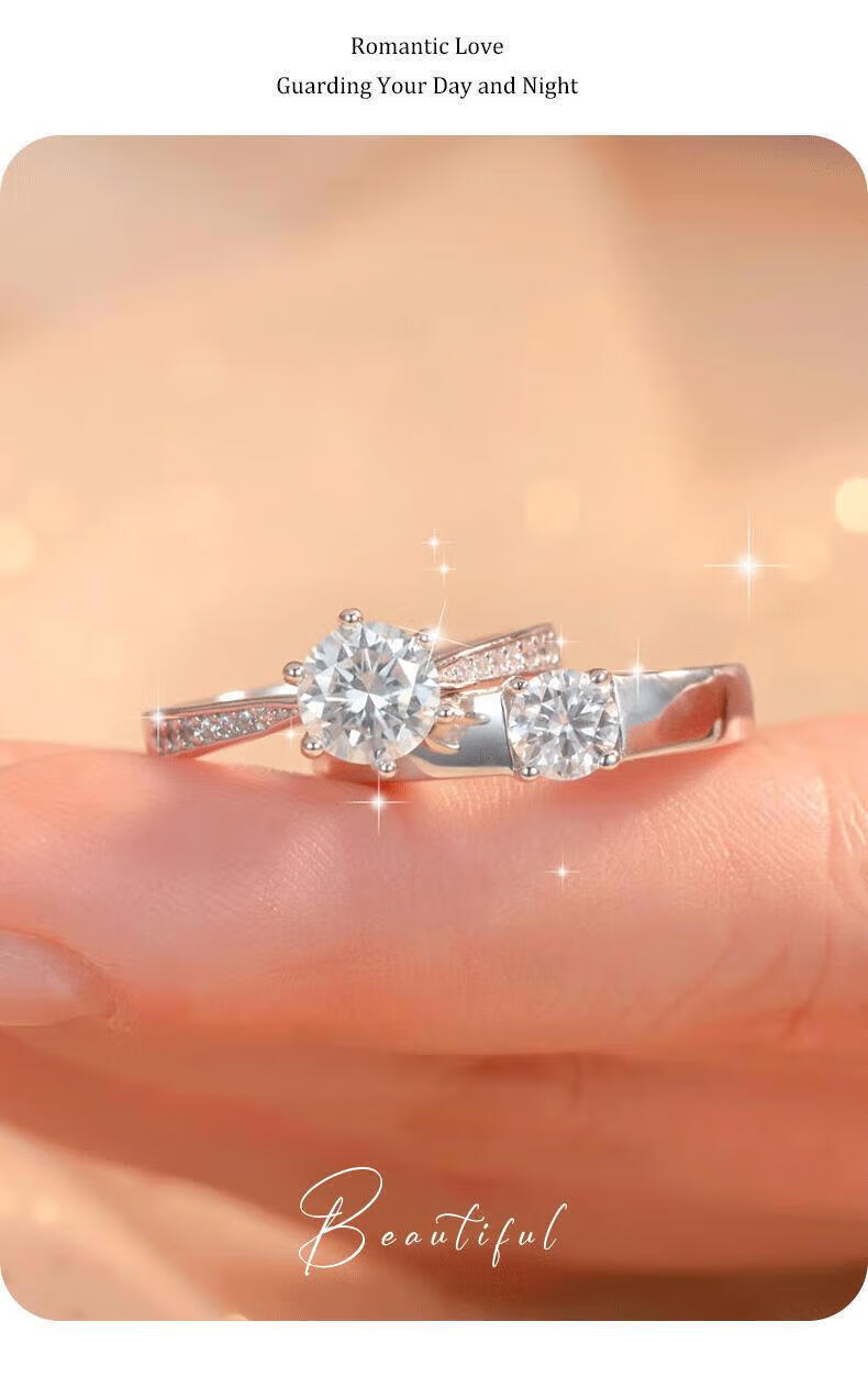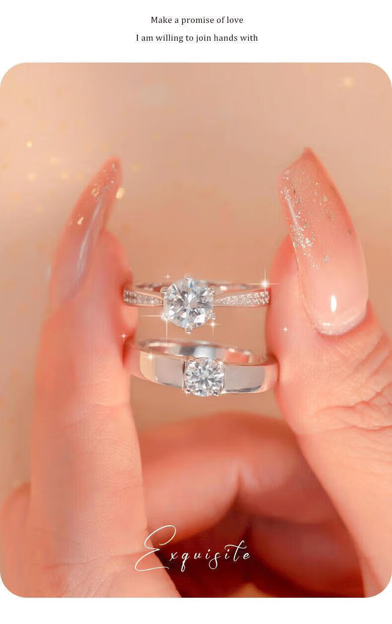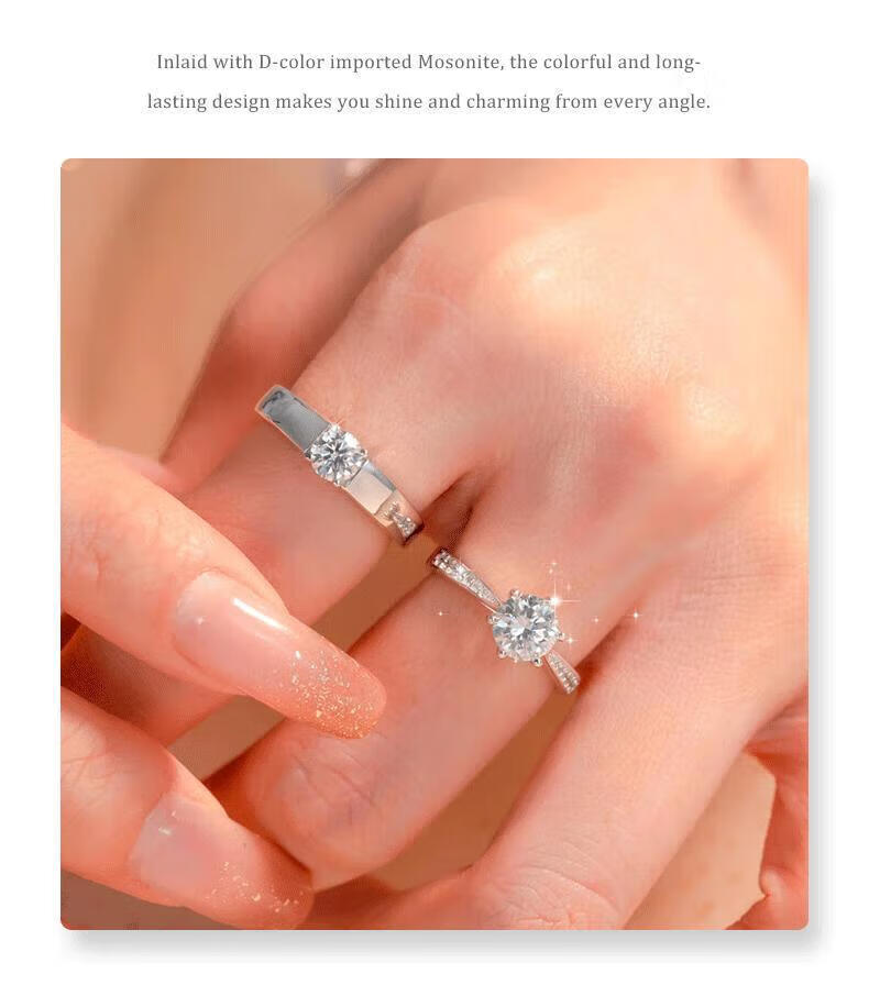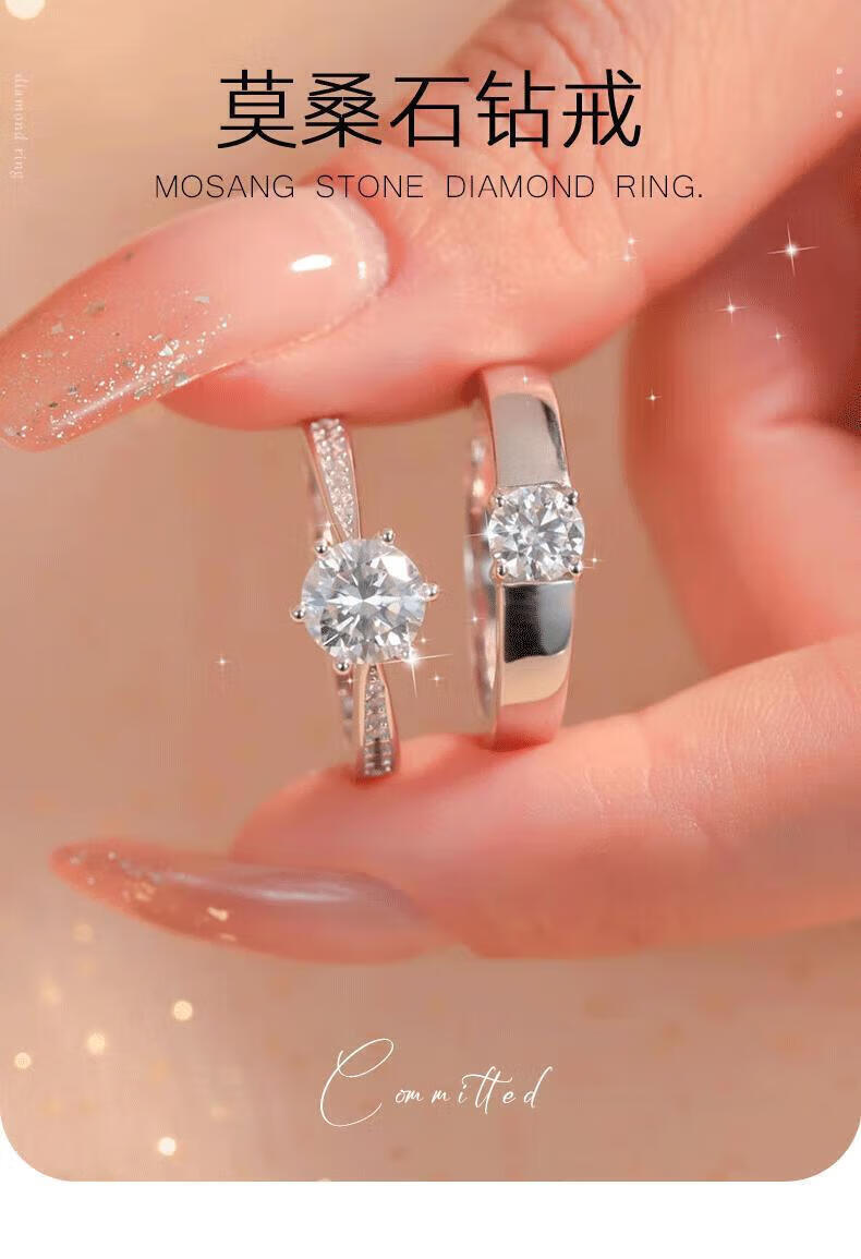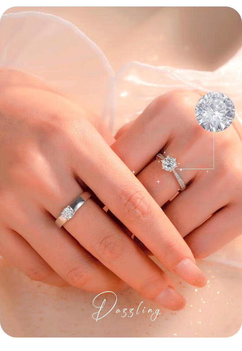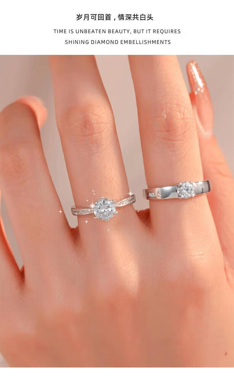 Pt950 platinum moissanite ring wedding couple ring female diamond ring exchange ring wedding proposal 2 carat female ring + 1 carat male ring - light luxury model