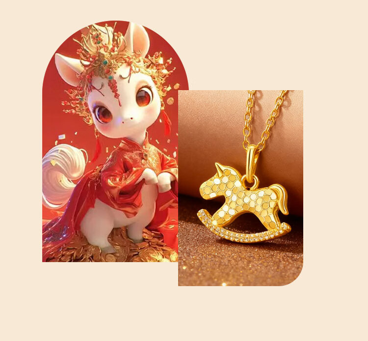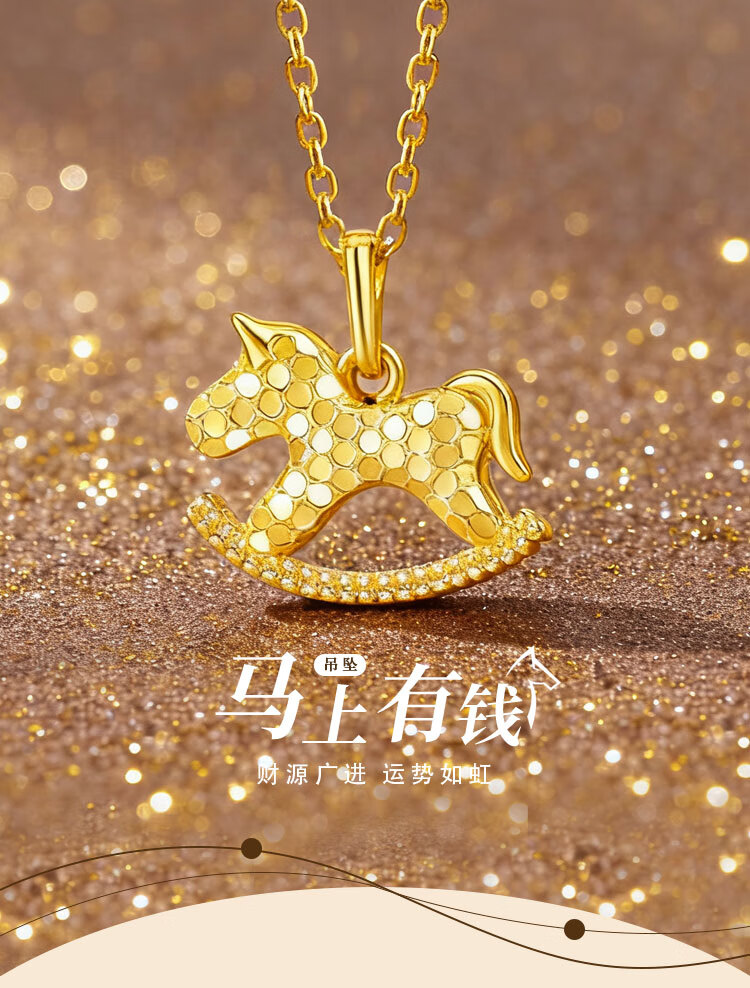 Lao Fengxiang 18K gold wooden horse pendant for women, light luxury niche high-end necklace, Valentine's Day birthday gift for girlfriend and wife 18K gold wooden horse pendant with S925 silver chain, about 0.18g