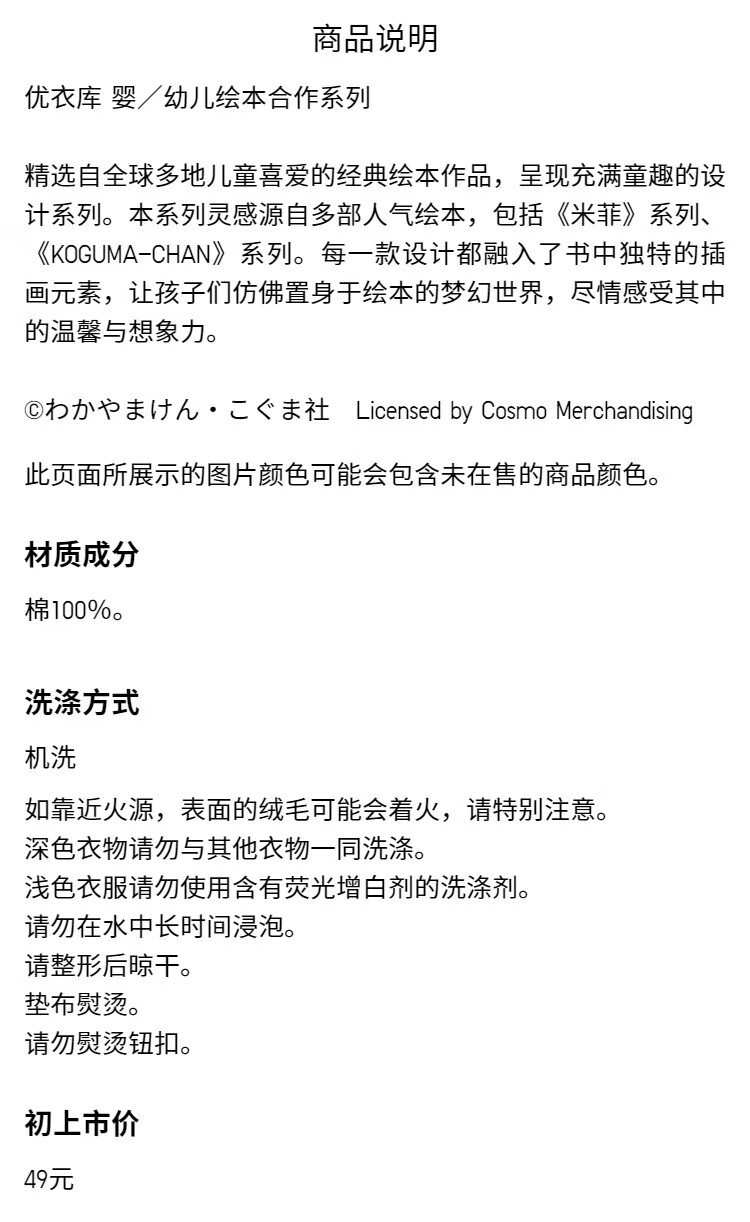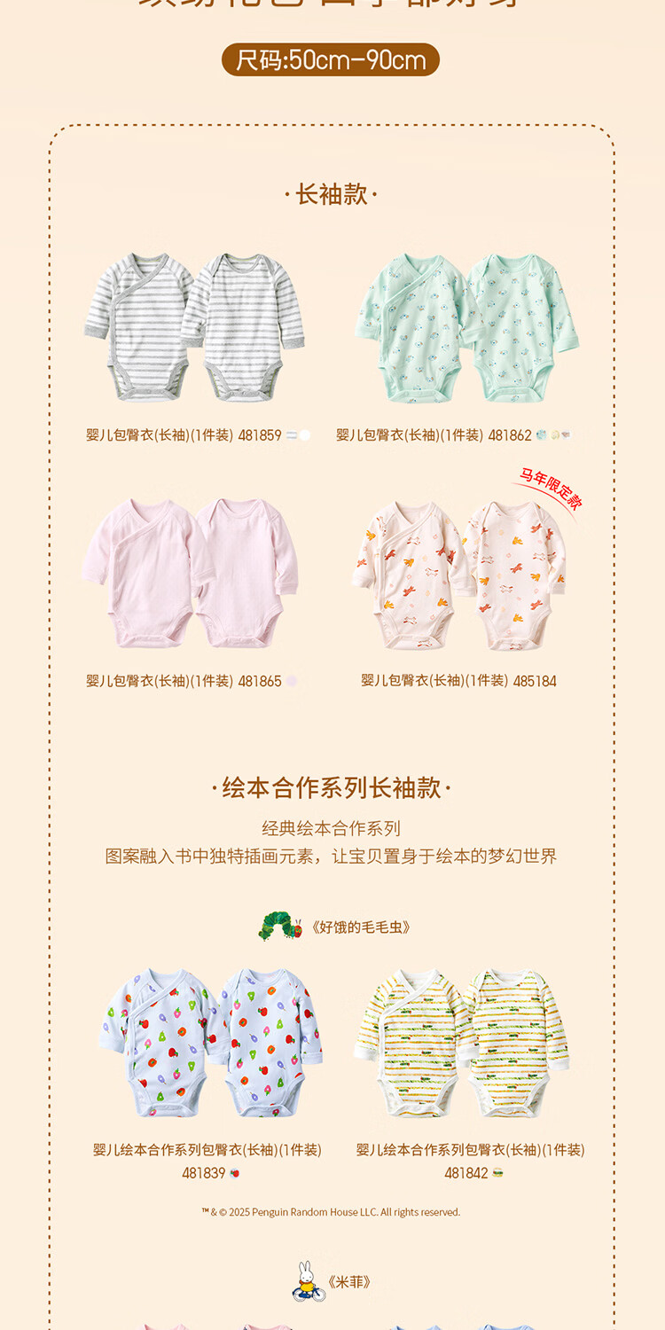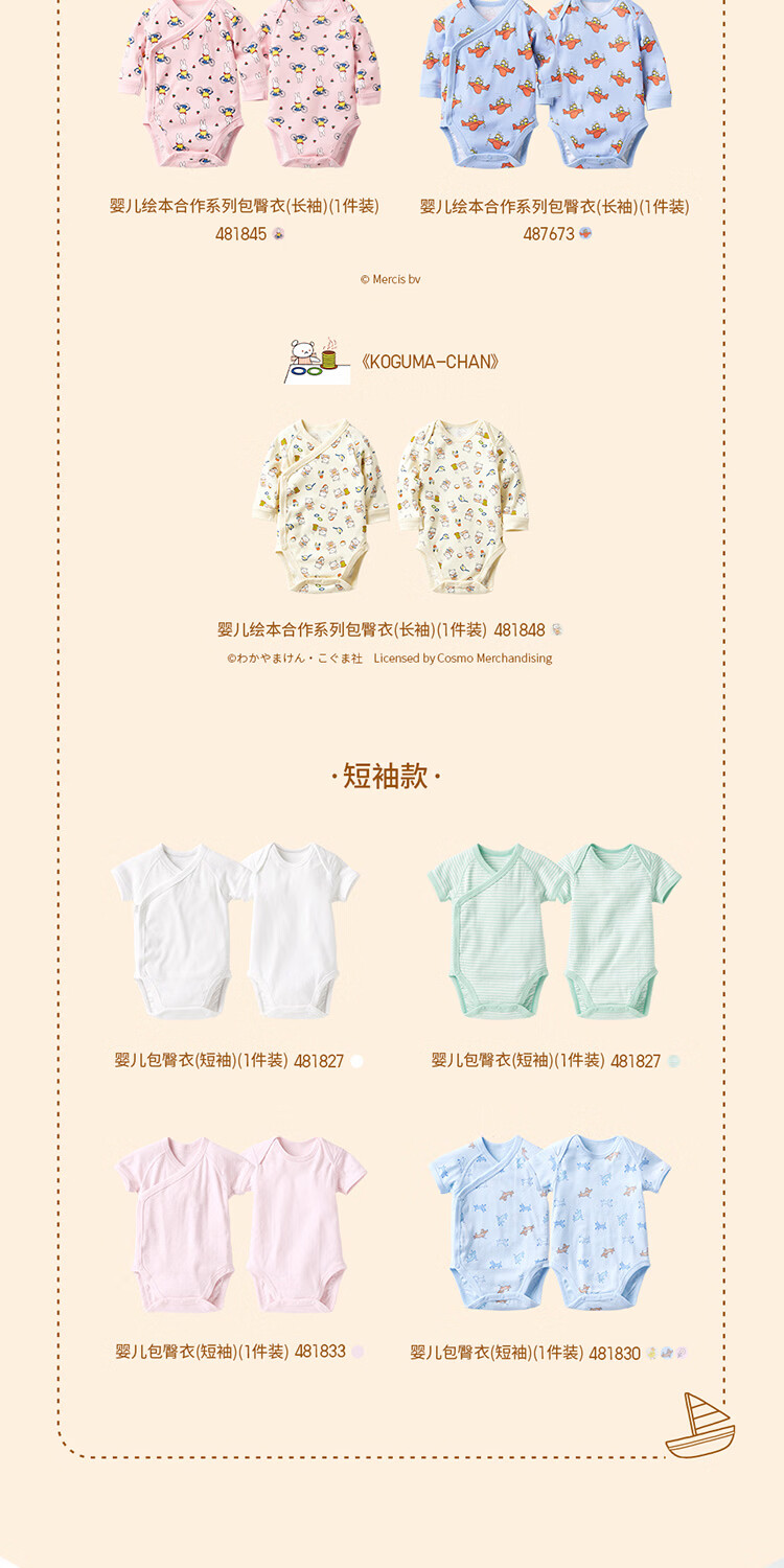 UNIQLO Infant Baby UT Picture Book Cooperation Series Hip Covering Garment/Long Sleeve 1 Piece Covering Garment 481848 40 Cream 80cm