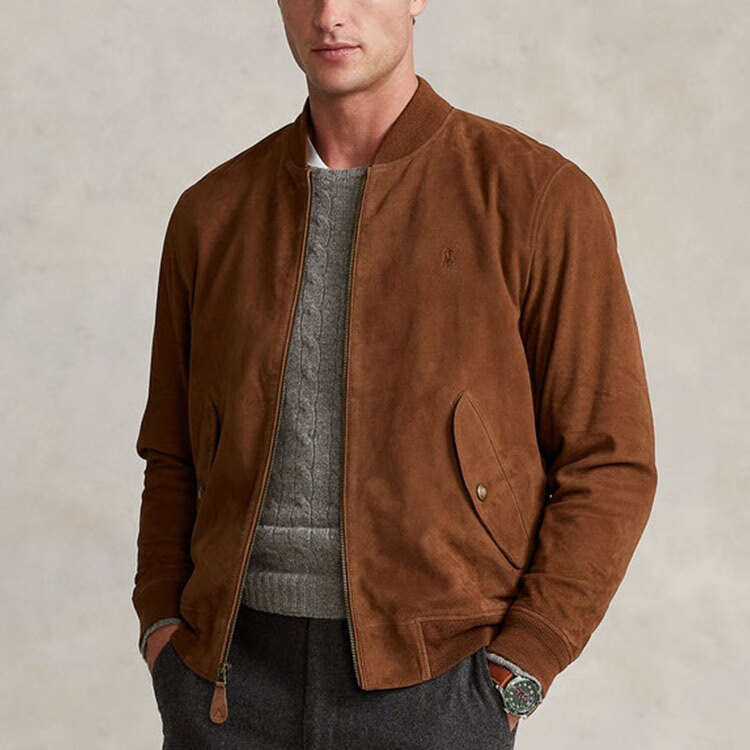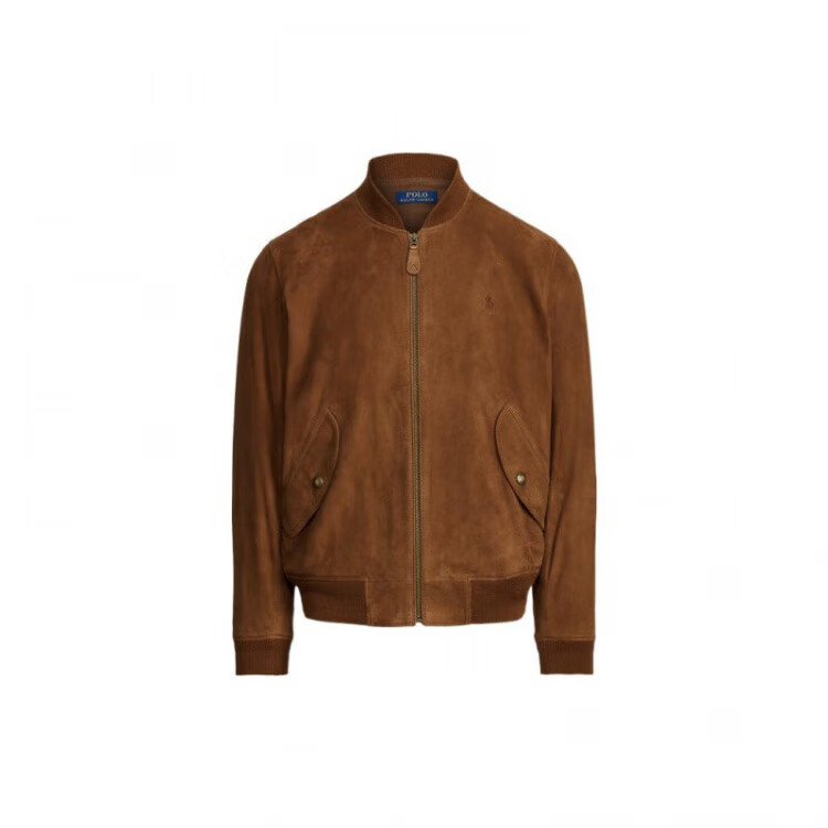 RALPH LAUREN Ralph Lauren SS22 solid color zipper cashmere leather casual long-sleeved leather jacket for men brown brown M