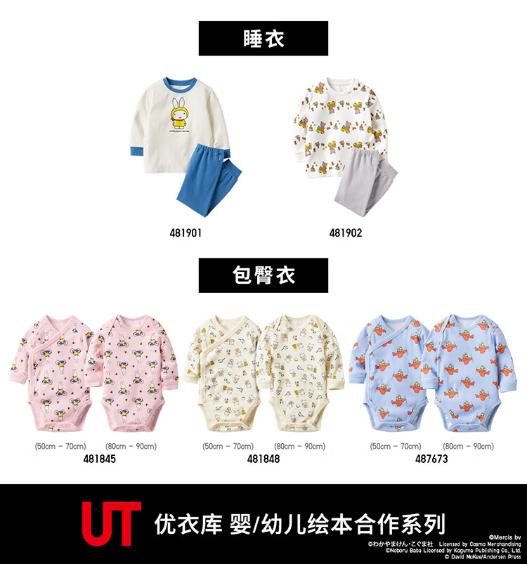 UNIQLO Infant Baby UT Picture Book Cooperation Series Hip Cover Long Sleeve 1 Piece Cover 481848 40 Cream 70cm