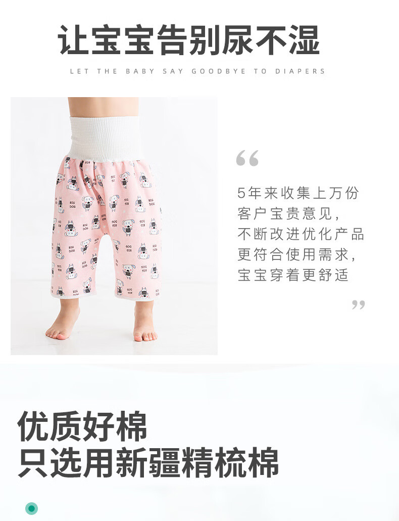 Carefully selected baby diapers, waterproof and leak-proof, washable baby belly protector, children's diaper pad, learning pants, diaper pants, White Bear Mama 1 piece, high waist belly protector, size L