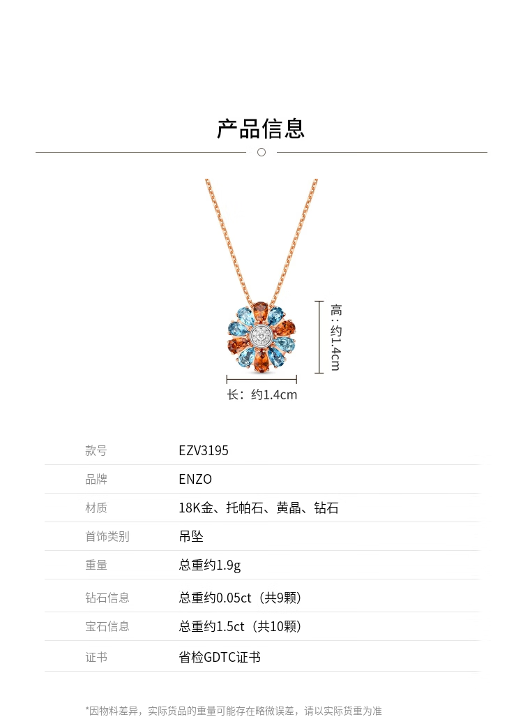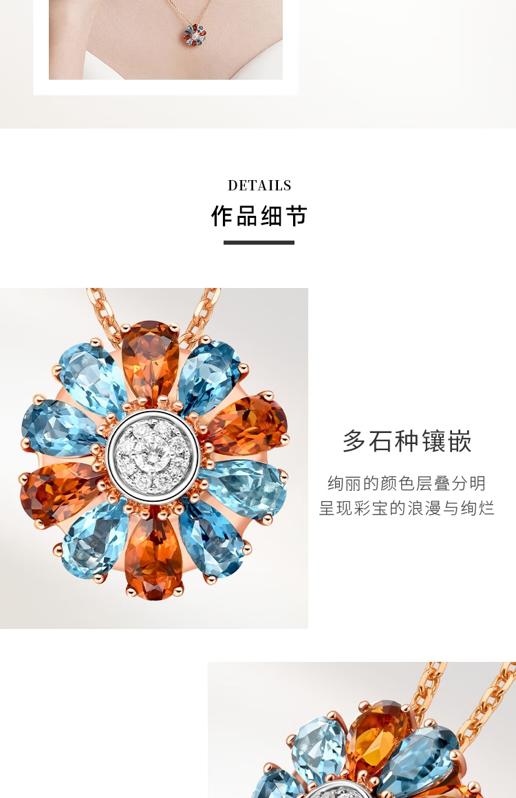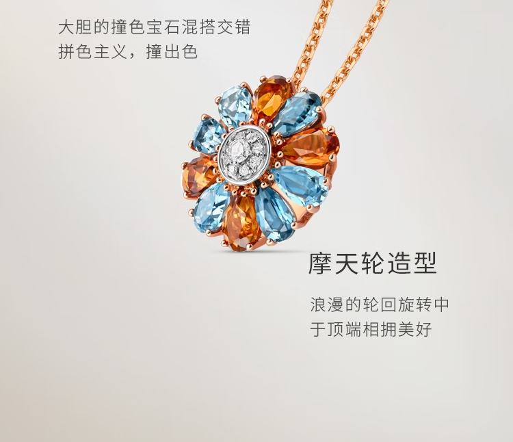 Chow Tai Fook ENZO Aurora Flower 18K gold colorful gemstone pendant gift for women EZV3195 free silver chain EZV3195 EZV3195