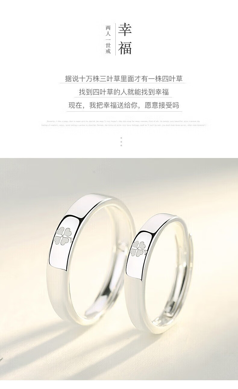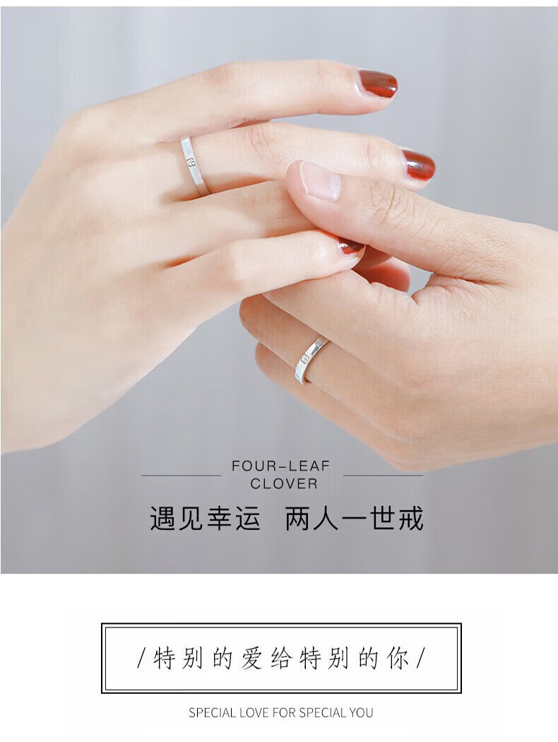 Pt950 platinum ring, four-leaf clover ring, fashionable opening, Valentine's Day, Chinese Valentine's Day, 520th birthday gift, couple ring, Four-leaf Love-Female Ring-Luxury Style