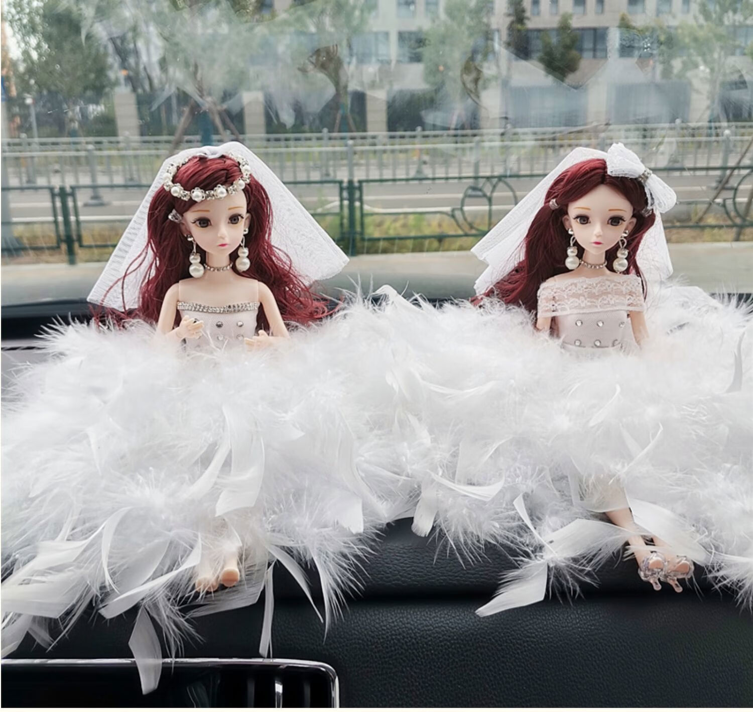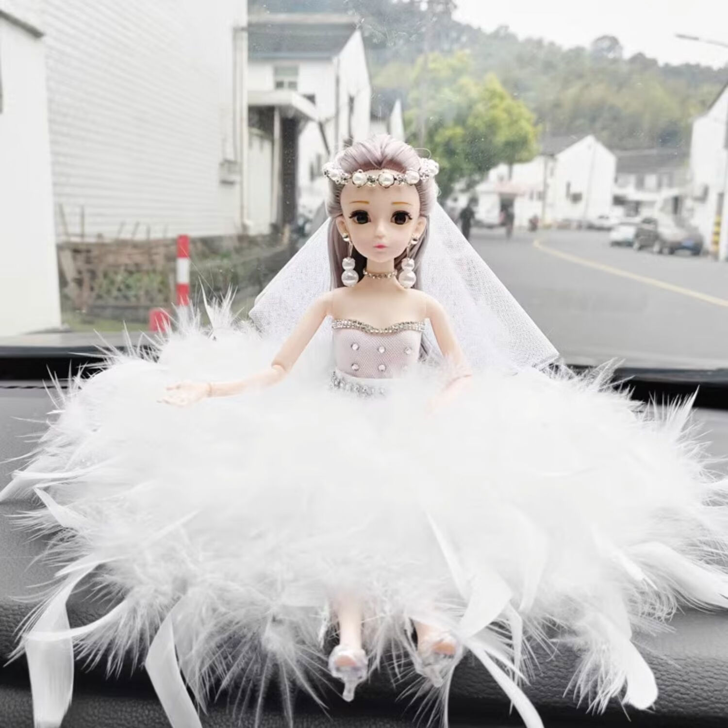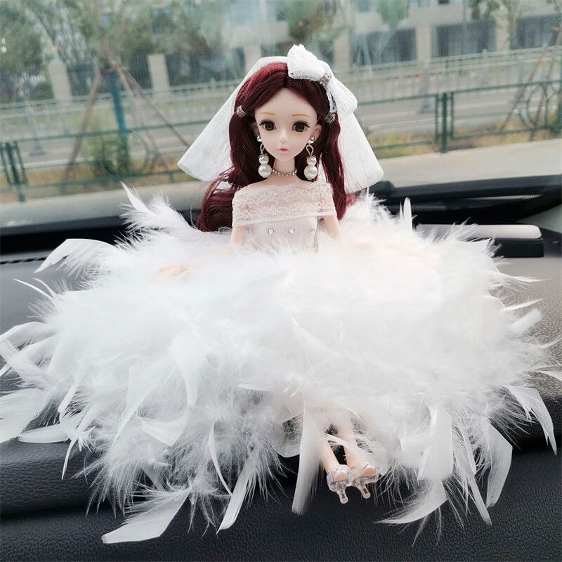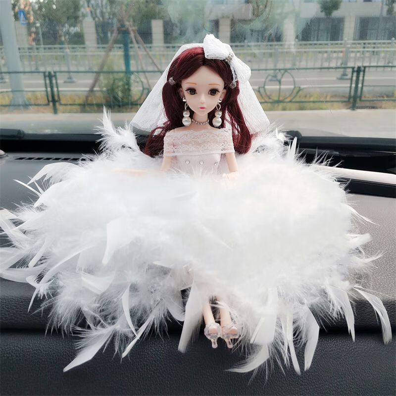 Goddess Litian Car Ornaments Interior Car Decorations Feather Wedding Dress Princess Doll Gift Barbie Doll Frost Princess White Feather Dress