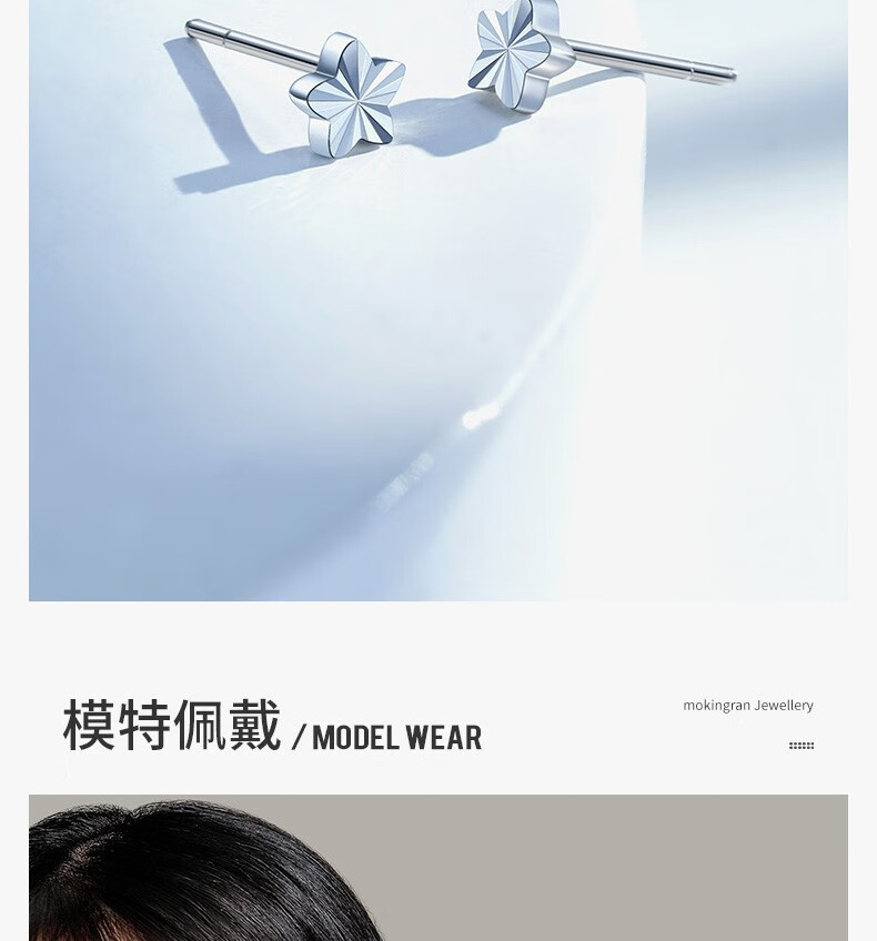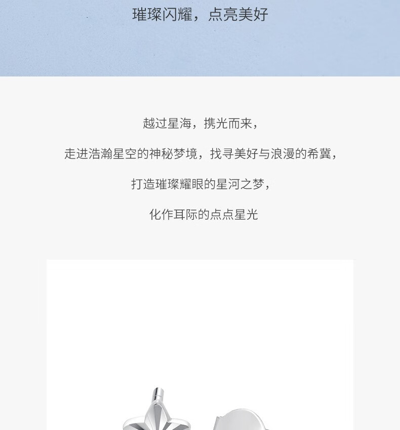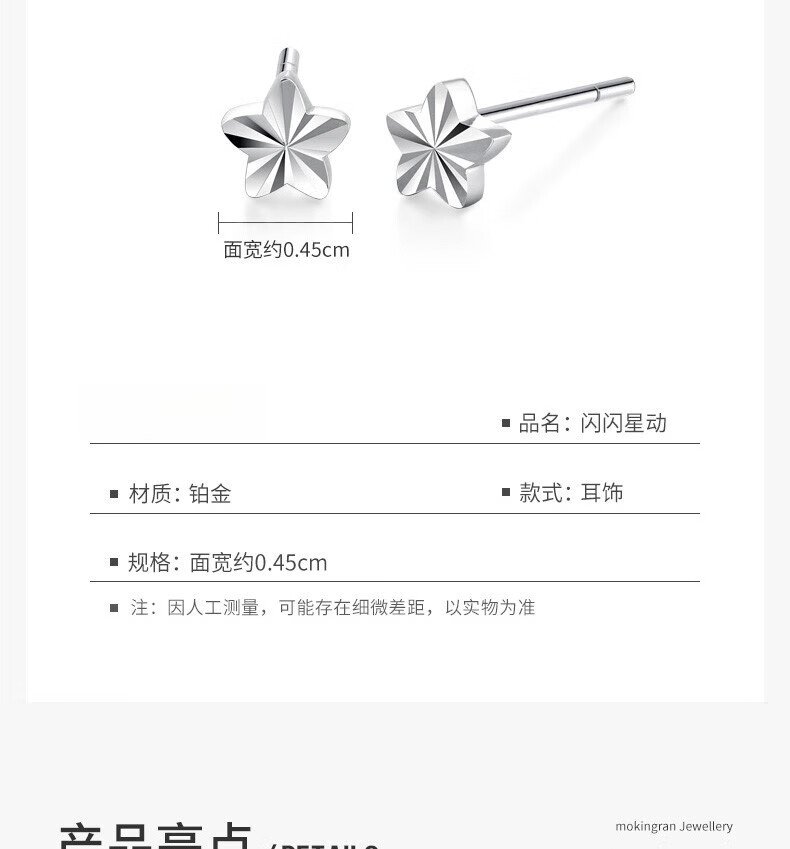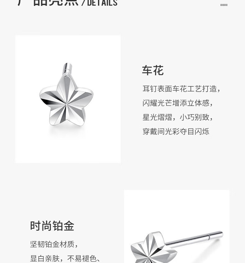 Chow Tai Sang platinum earrings for girls PT950 five-pointed star platinum earrings earrings ear care birthday gift for women with platinum ear plugs