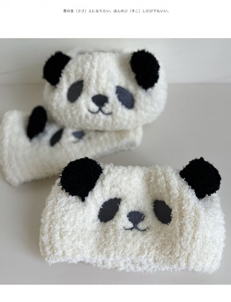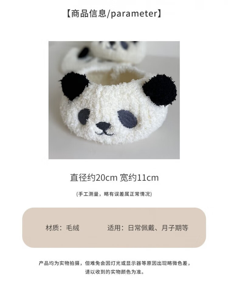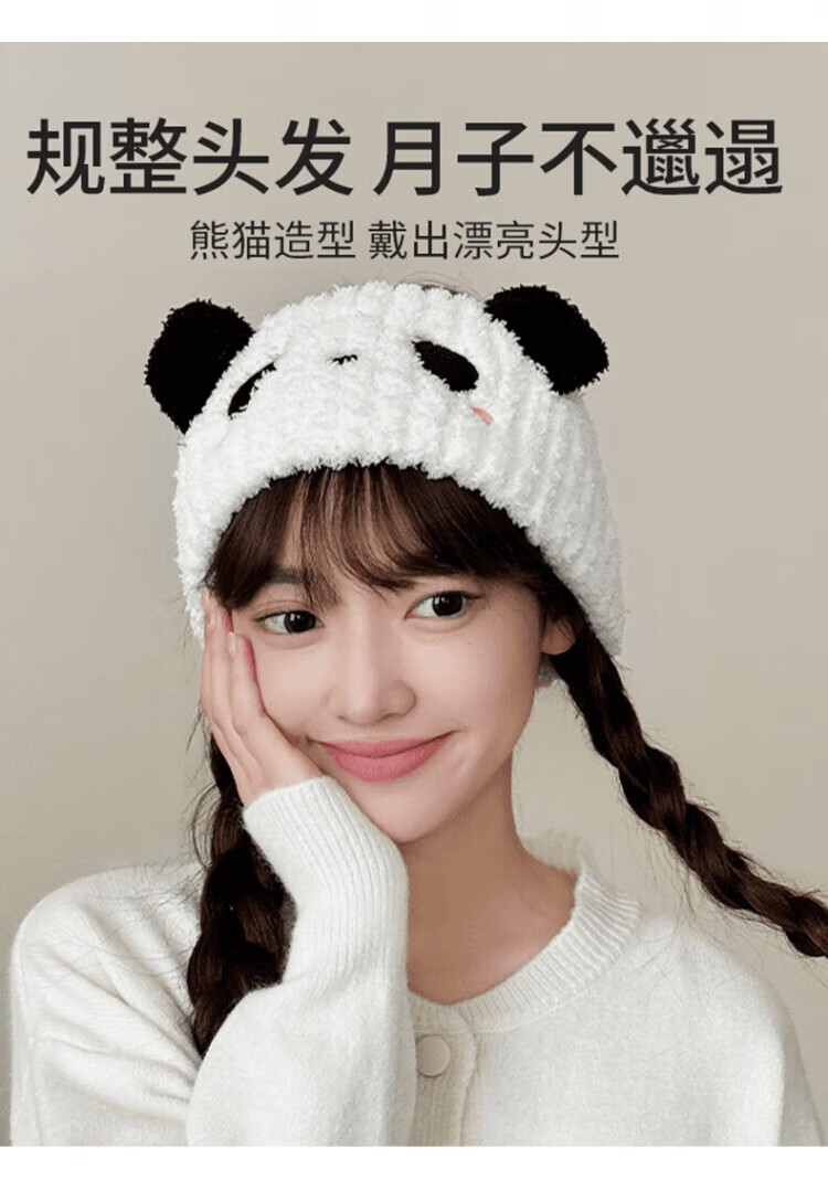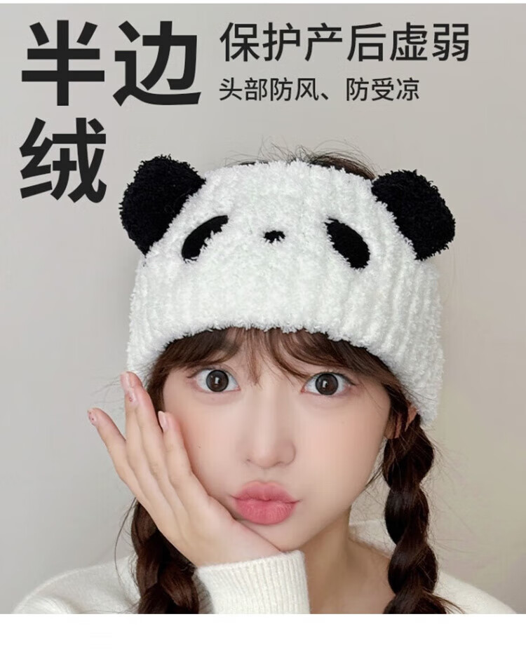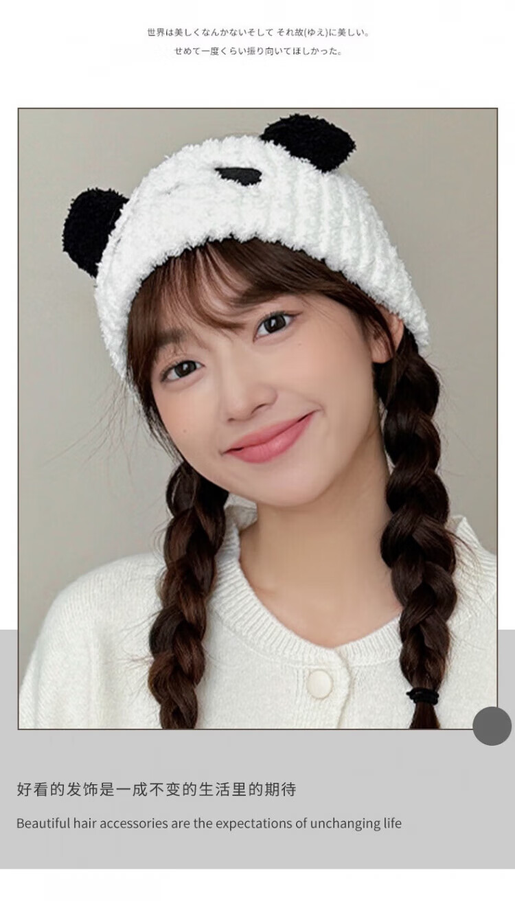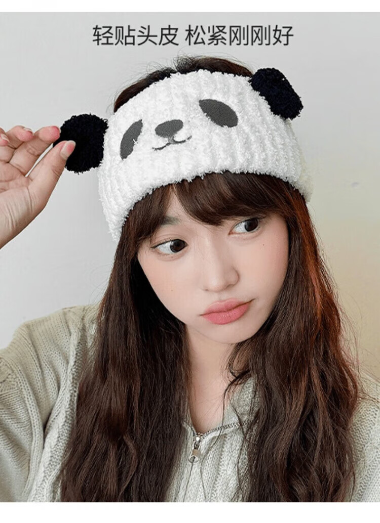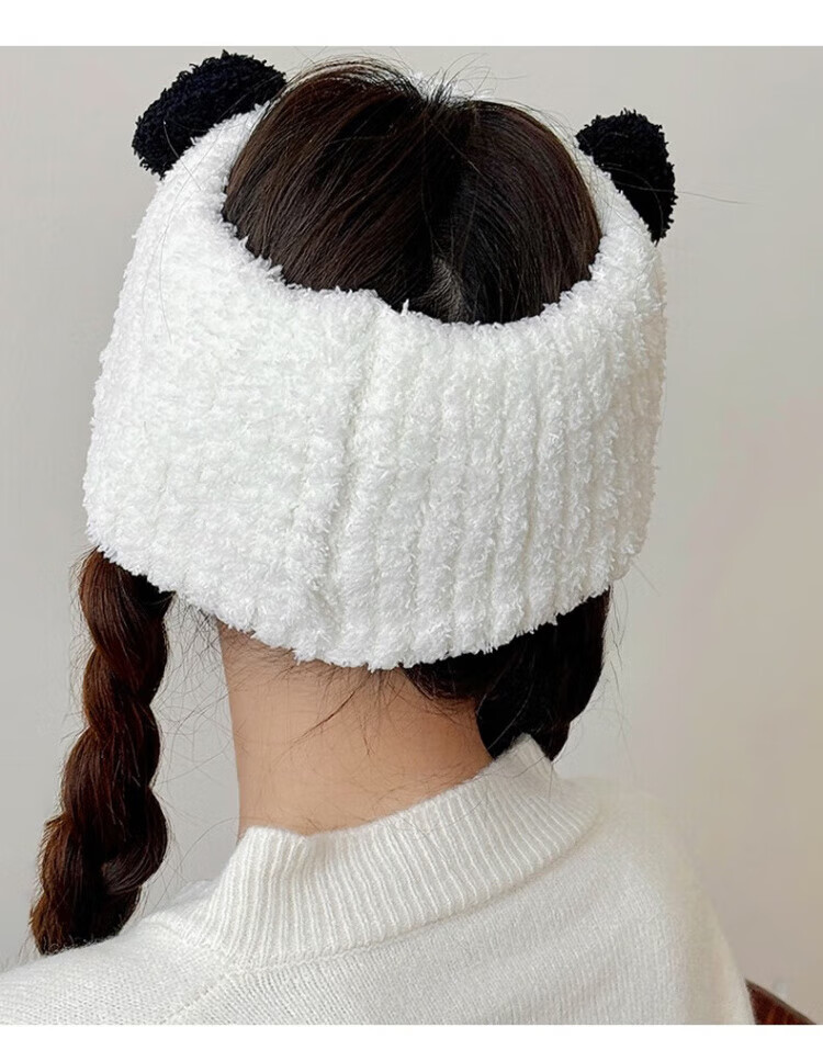 Oxygen plush panda headband autumn and winter widened forehead hoop women's warm windproof hood turban wide-brimmed face wash headband black ear panda headband