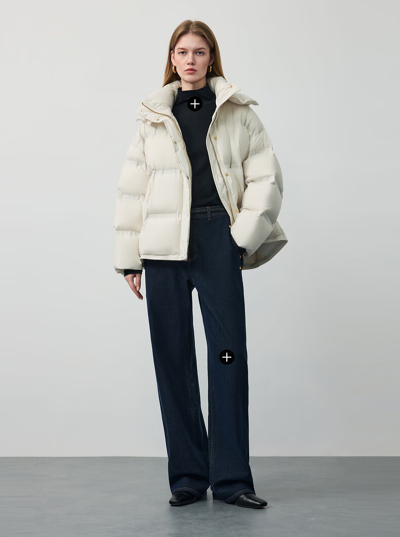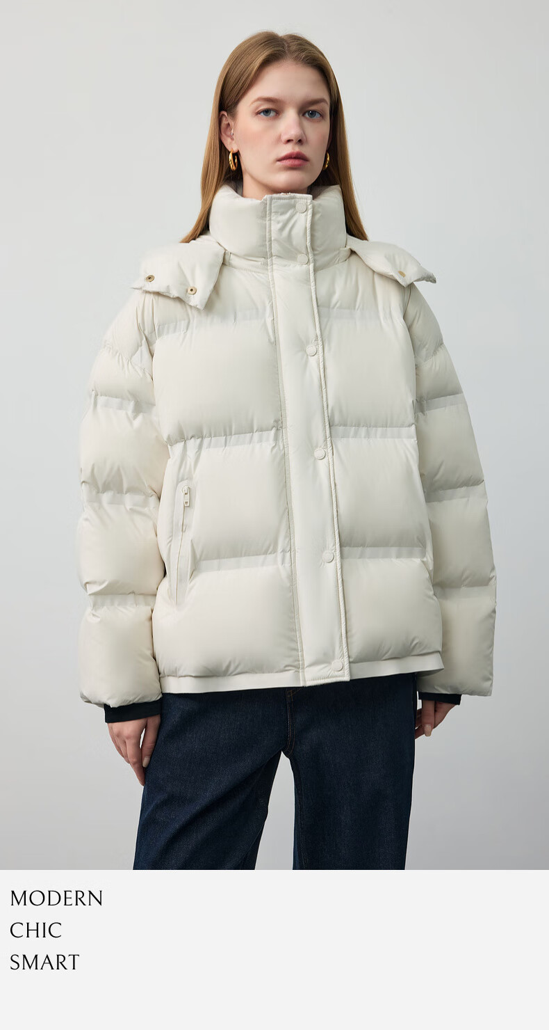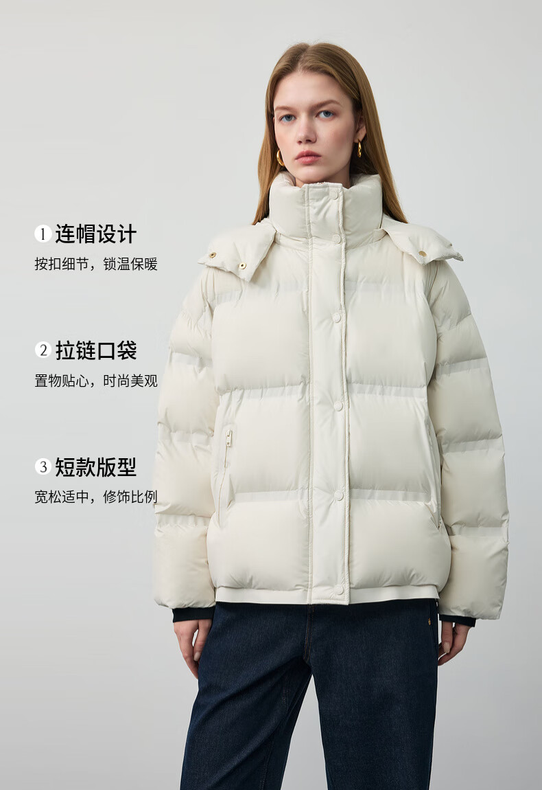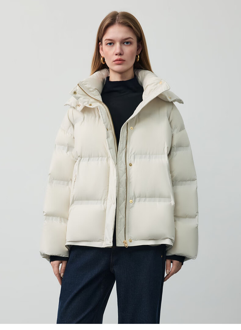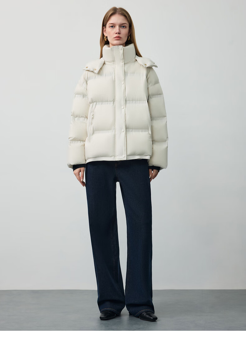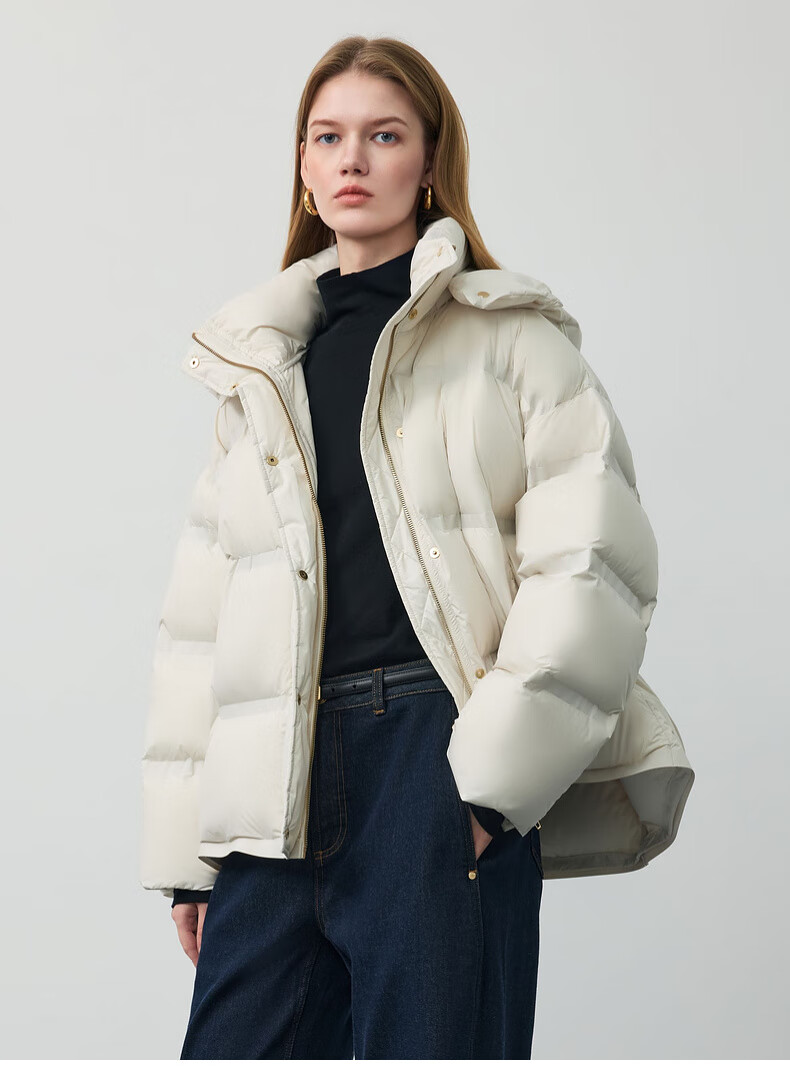 PRICH 90% goose down simple hooded cloud puff short down jacket winter women 39 ivory white XS 155