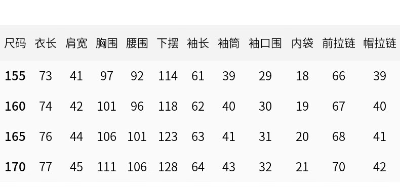 China (cm) 160-165/84-86 165-170 / 88-90 167-172 / 92-96 168-173 / 98-102 170-176 / 106-110