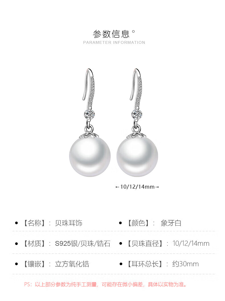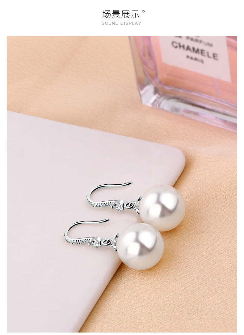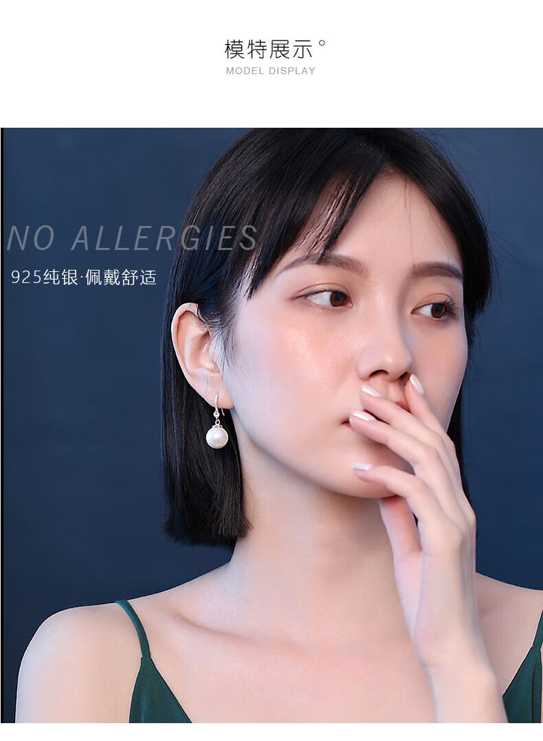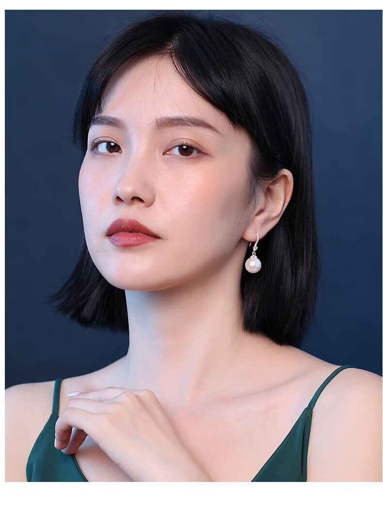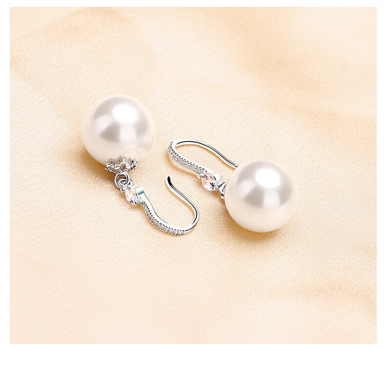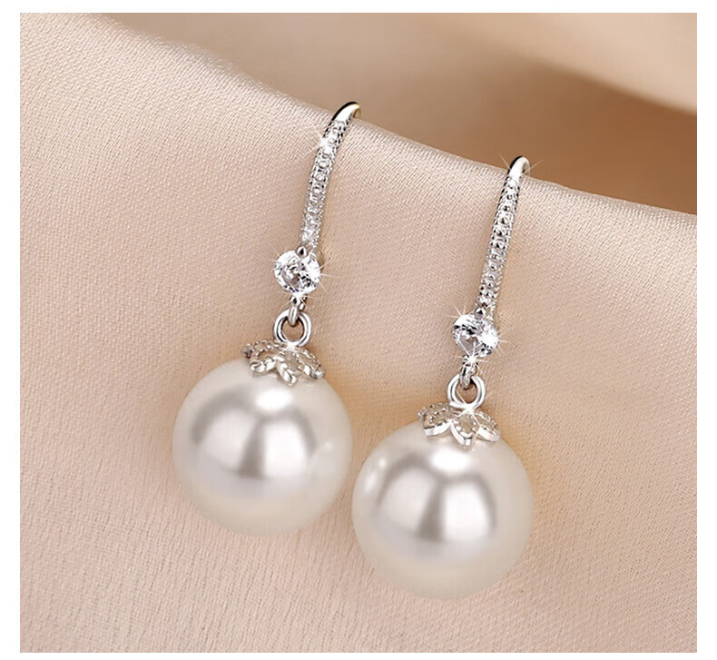Centennial-old Fenxiang s925 sterling silver pearl earrings Jurchen silver earrings retro pearl earrings 2025 new earrings diamond ear hook tori white 12mm temperament