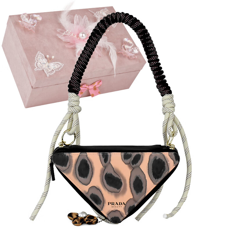 PRADA Customized Cosmetic Bag Flower Pendant Leopard Fashion Ins Style Workwear Niche Design Western Fashion American Handbag Flower Pendant Leopard-Black Panther Pattern Gift Box