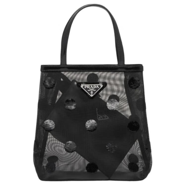 PRADA Wavelet Sparkle Double Handle Enamel Metal Triangle Logo Leather Handbag Small Women's Black Basic Pack (Bag + Dust Bag)
