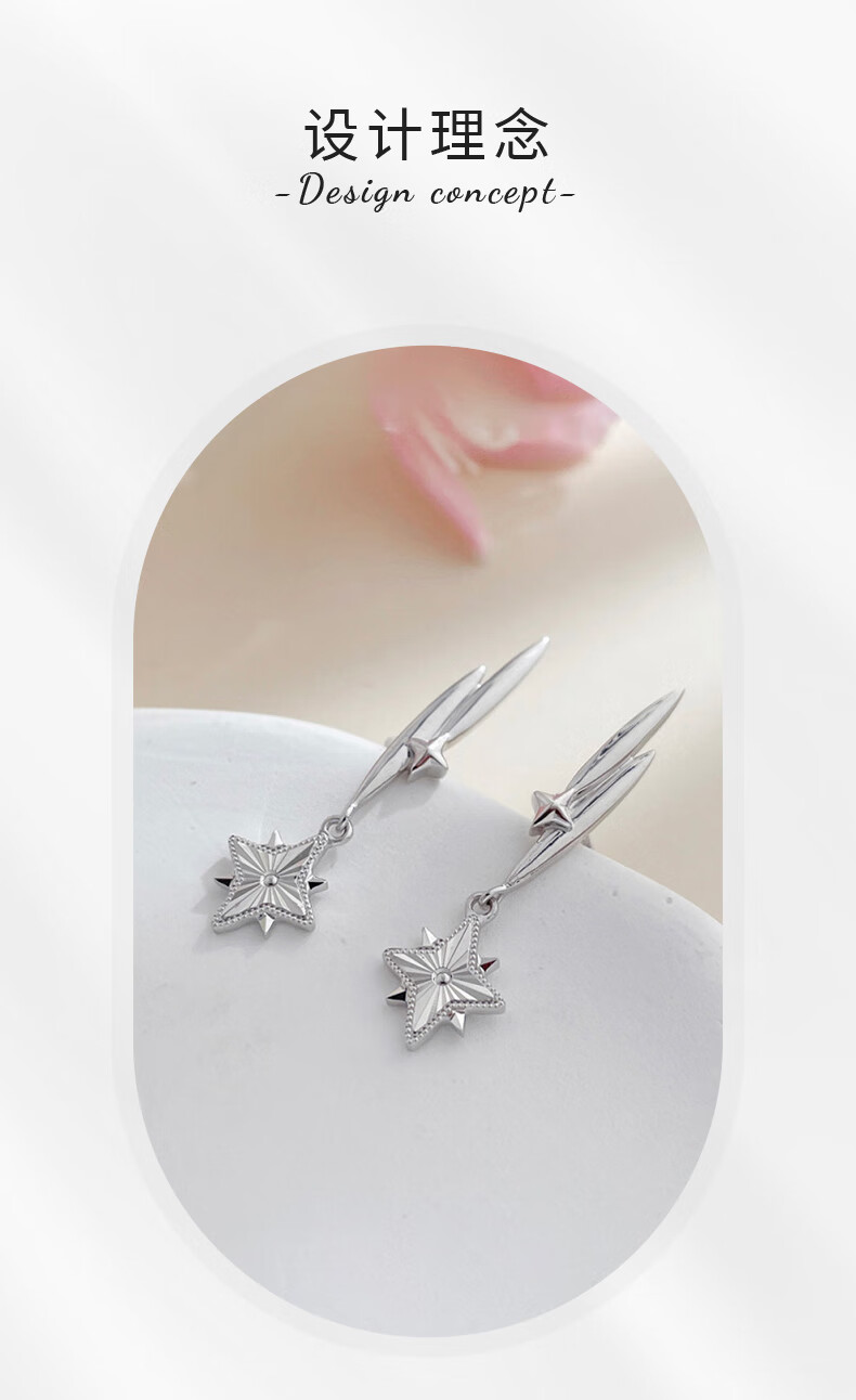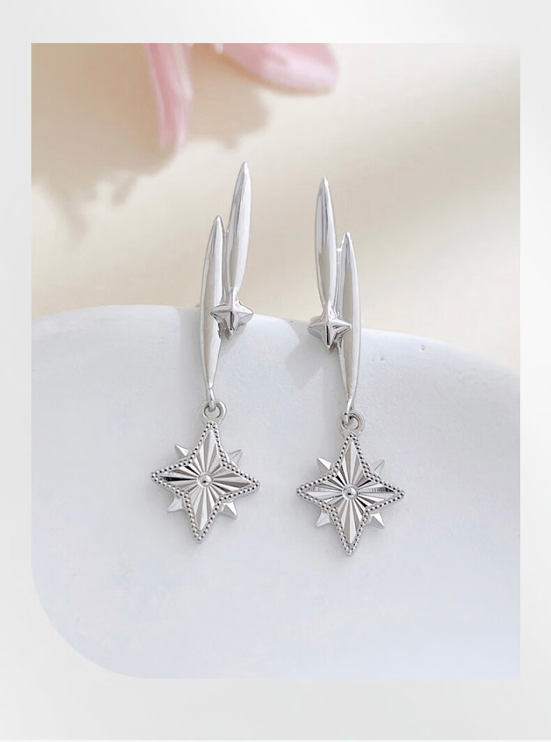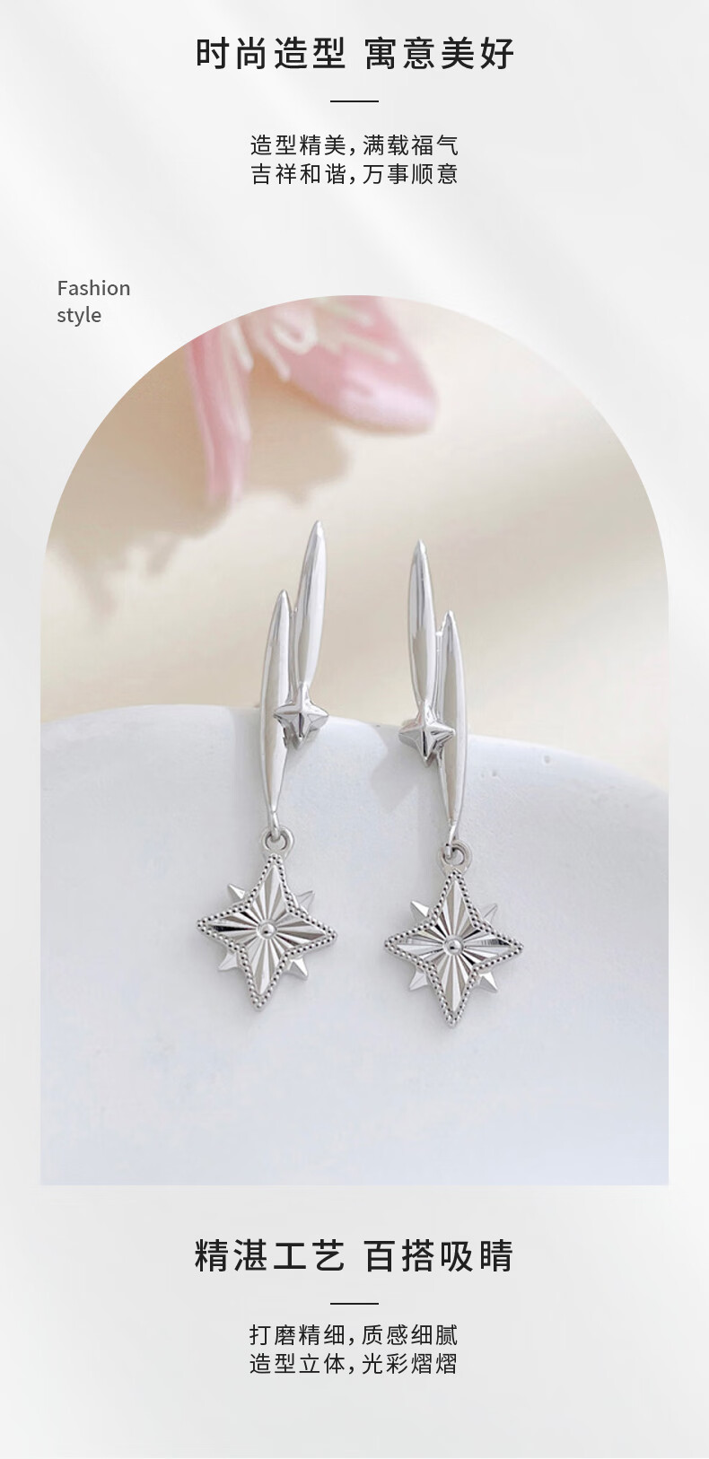 CHINA GOLD Platinum light-chasing meteor laser four-pointed star earrings Platinum light-chasing meteor laser four-pointed star earrings approximately 4.38g