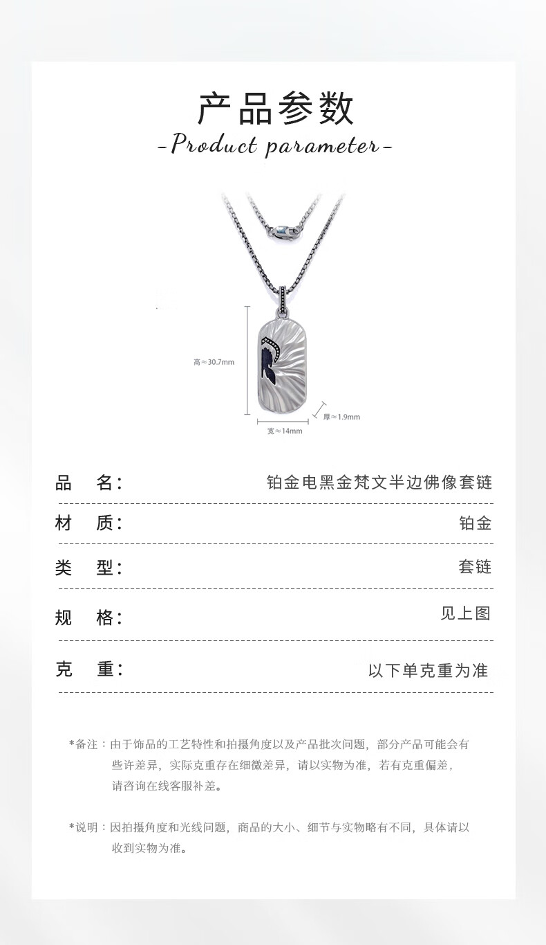 CHINA GOLD Platinum electric black gold Sanskrit half Buddha statue set chain Platinum electric black gold Sanskrit half Buddha statue set chain About 21.95g