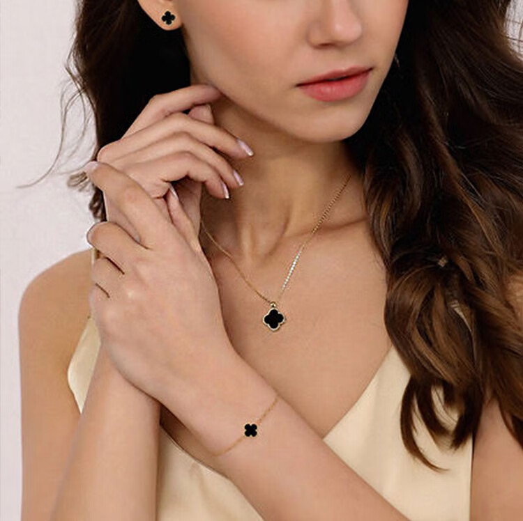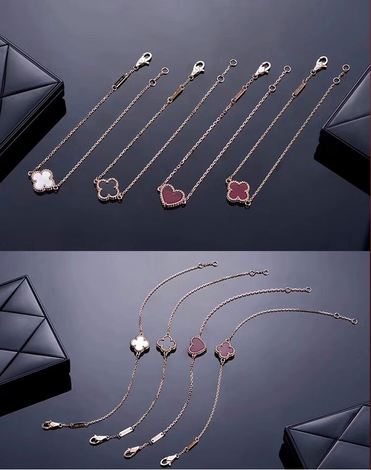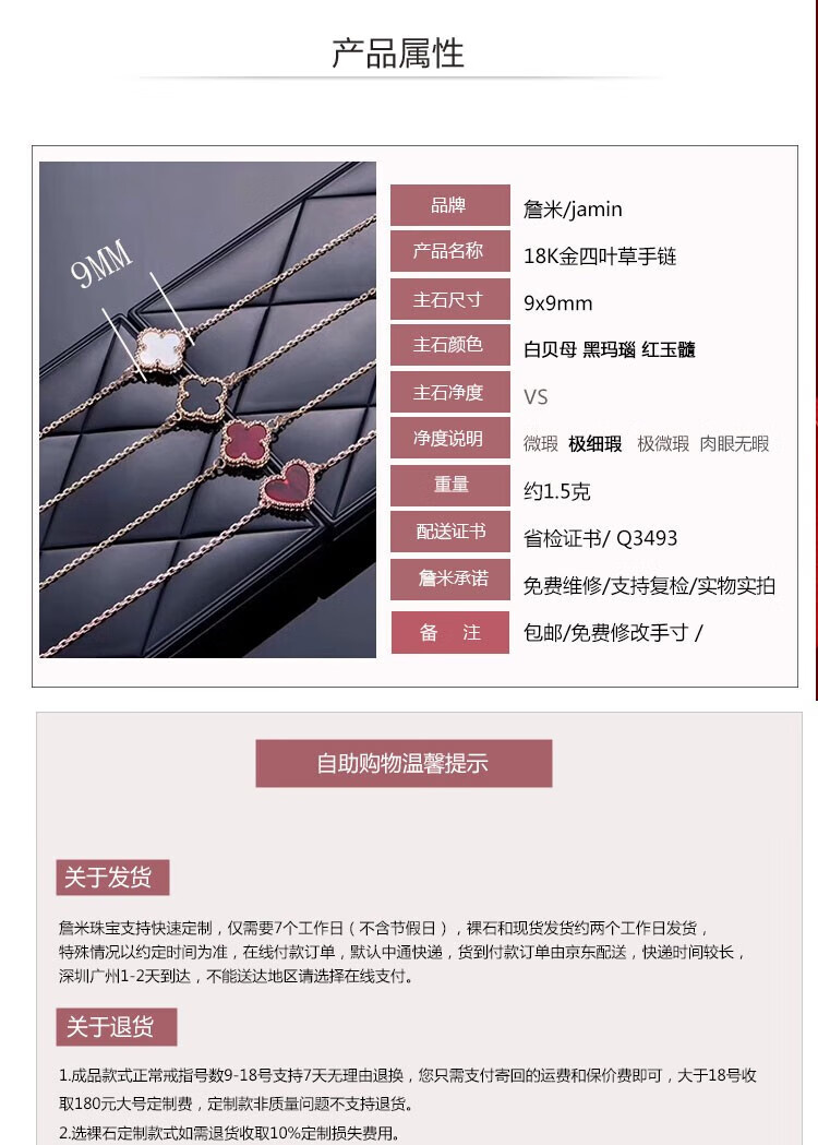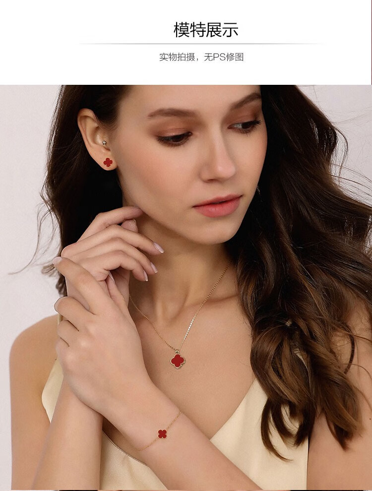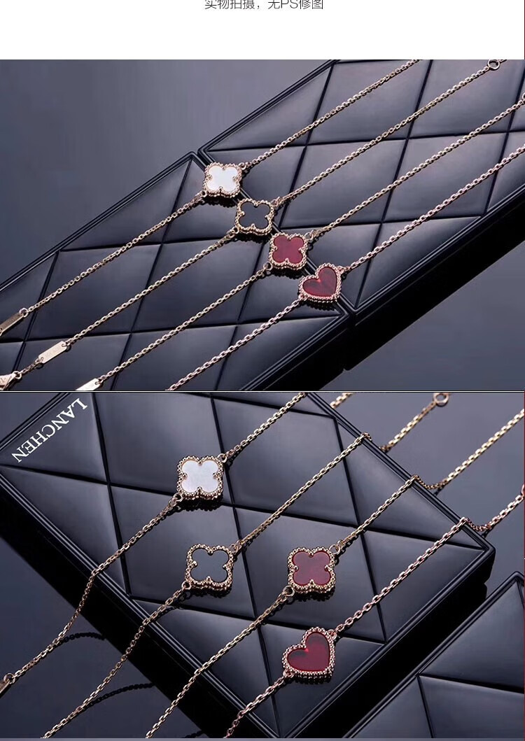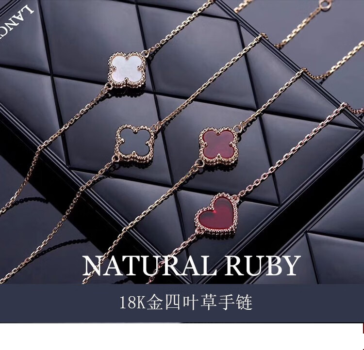 Junshi 18k real gold bracelet women's four-leaf clover AU750 rose gold white mother-of-pearl black agate carnelian 18K rose red agate