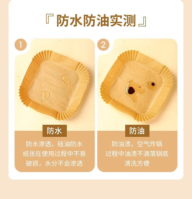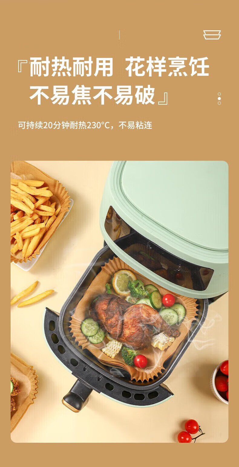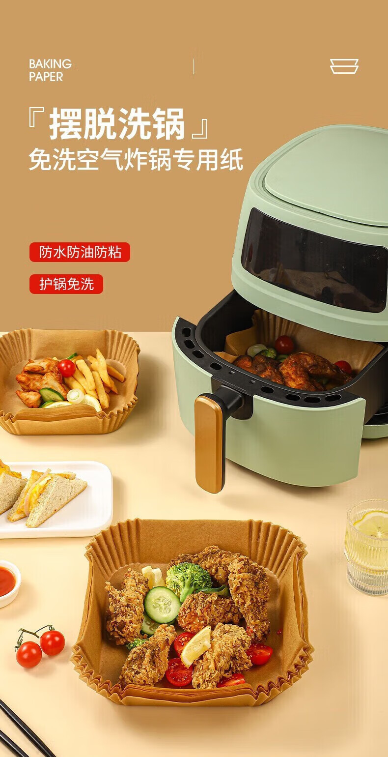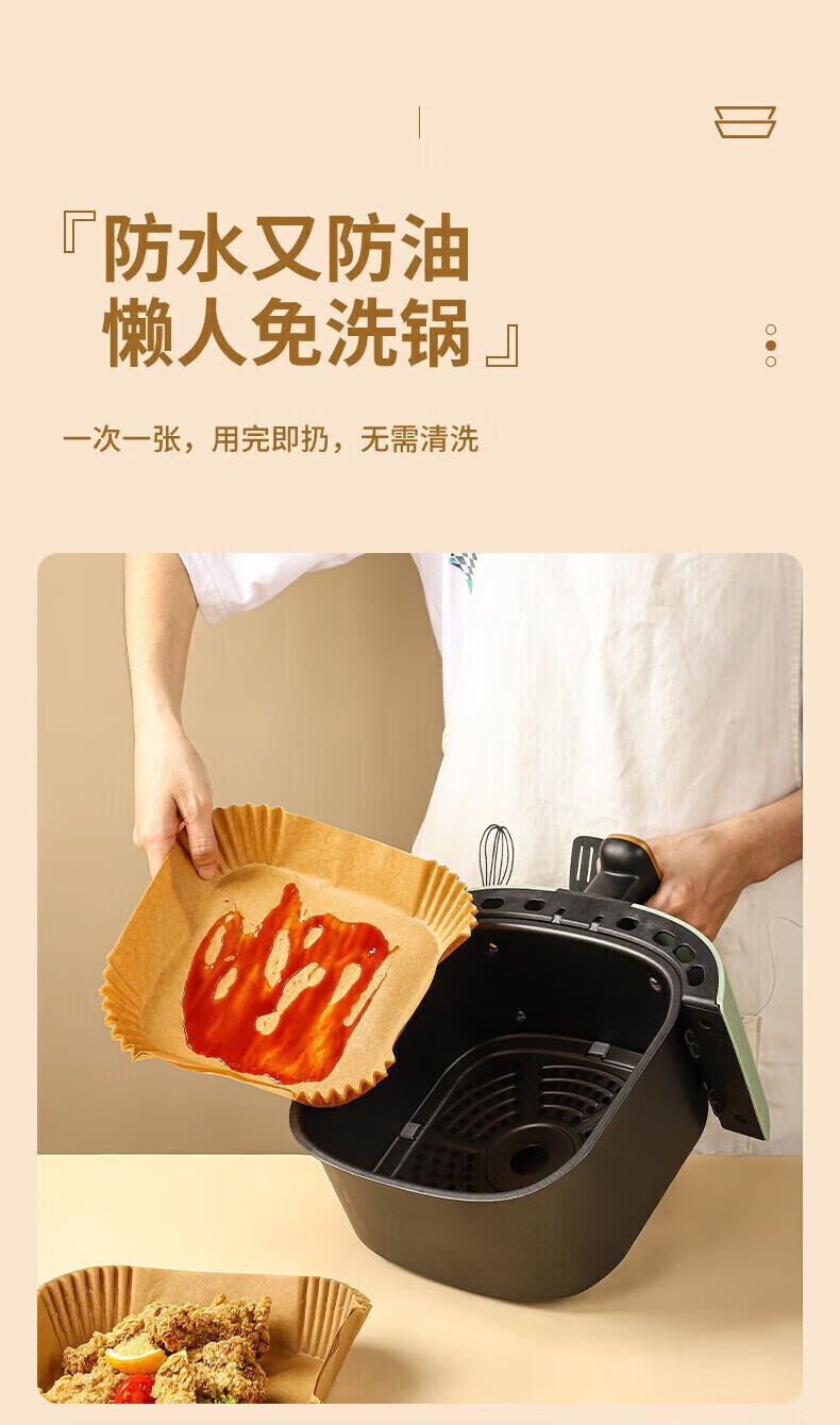 KAIOULI air fryer paper barbecue baking paper square oil-absorbing paper household food fried chicken silicone paper French fries barbecue paper thickened and enlarged-heightened edge 50 sheets