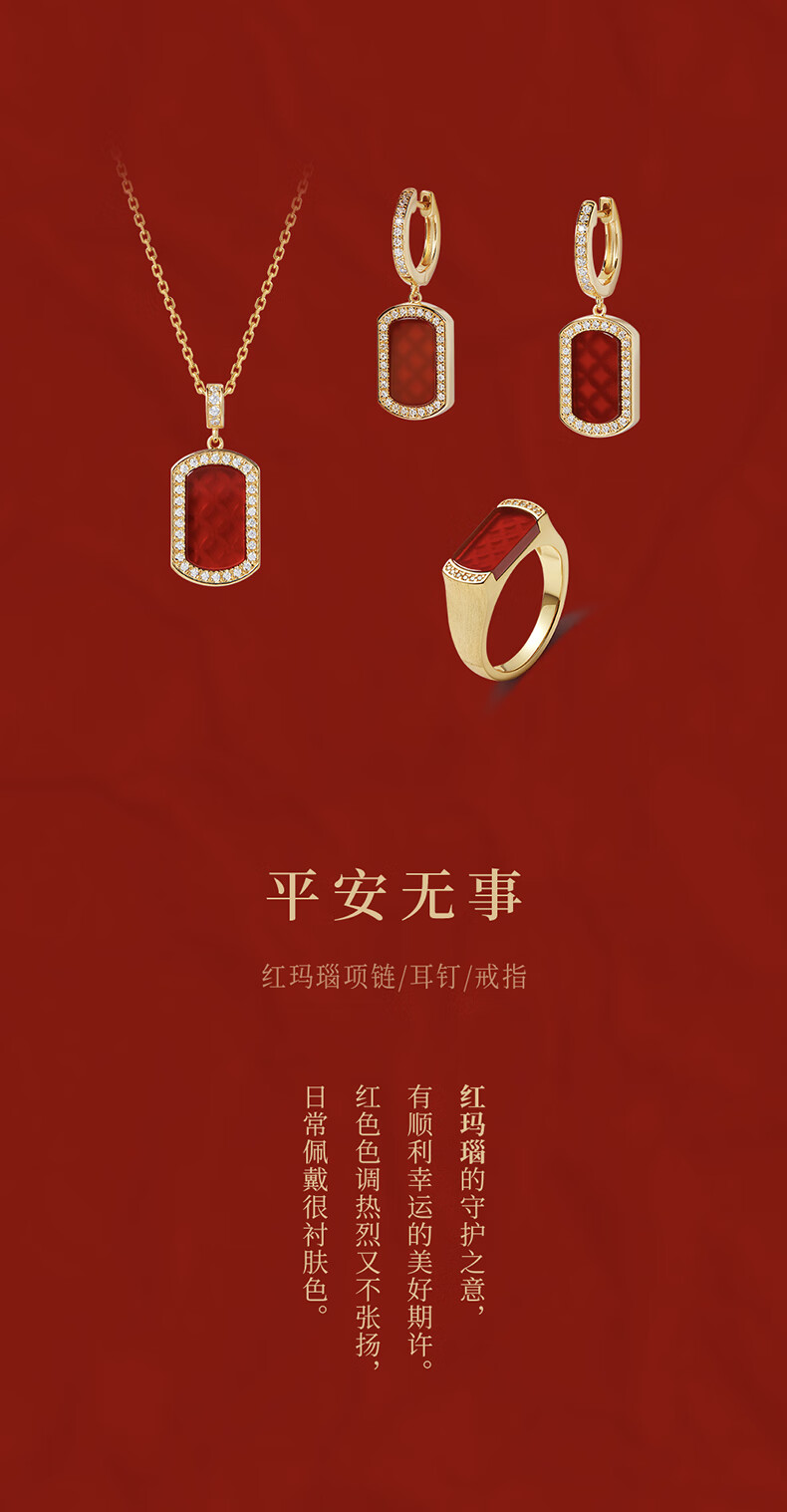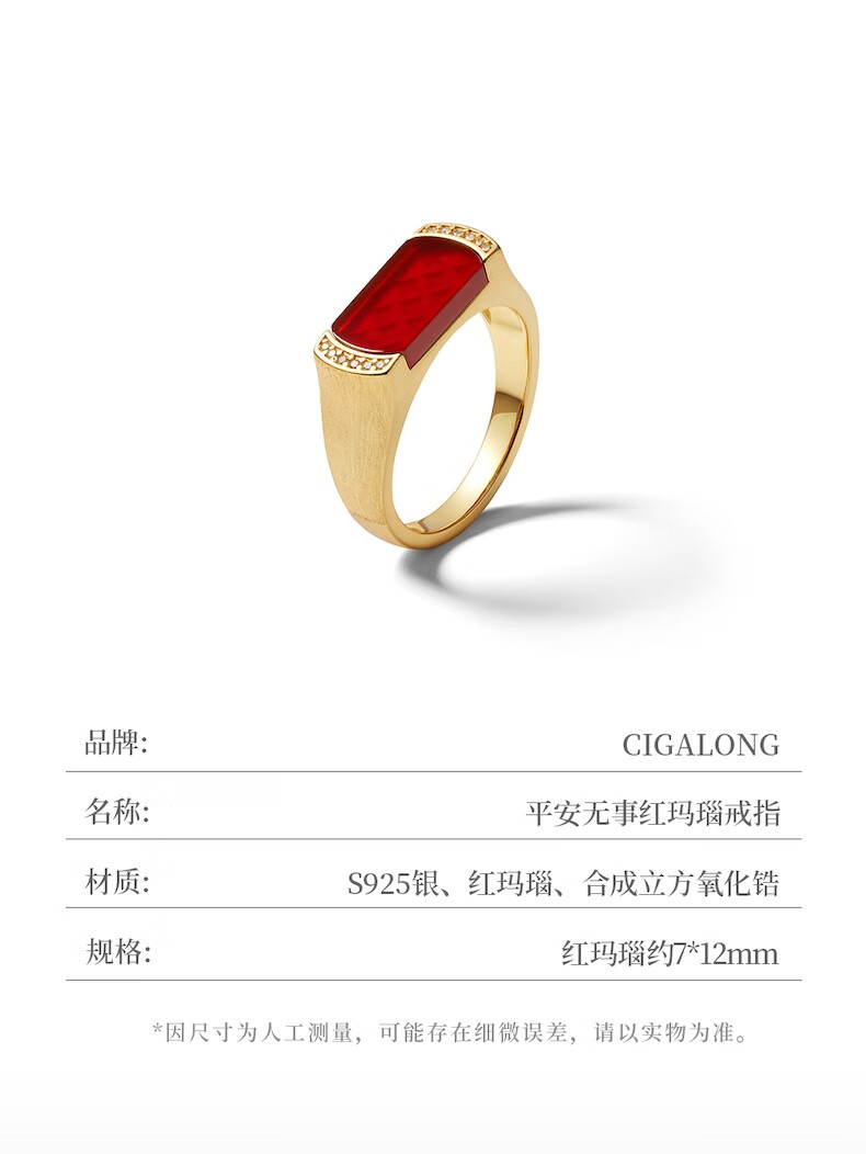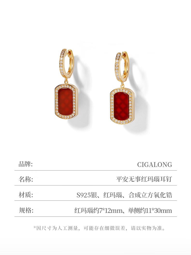 CIGA LONG Safe and Sound Red Agate Necklace Earrings Ring New Product Series New Chinese Style Jewelry Safe and Sound Red Agate Ring 9-10