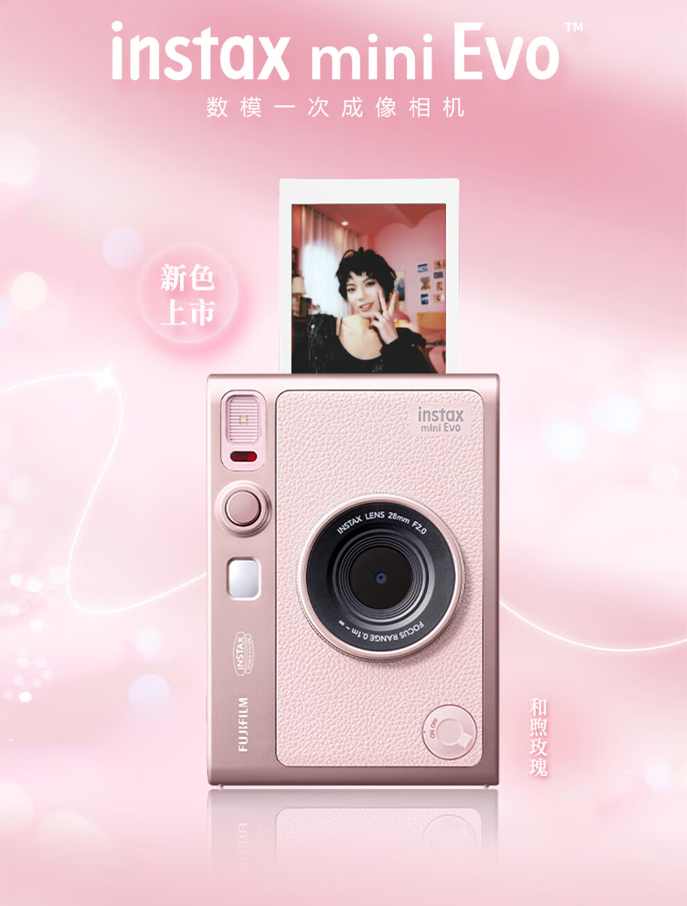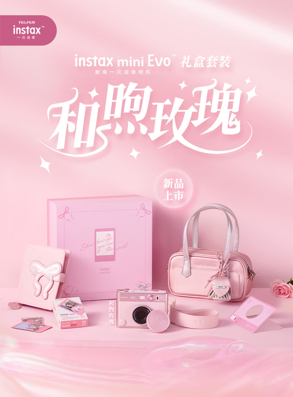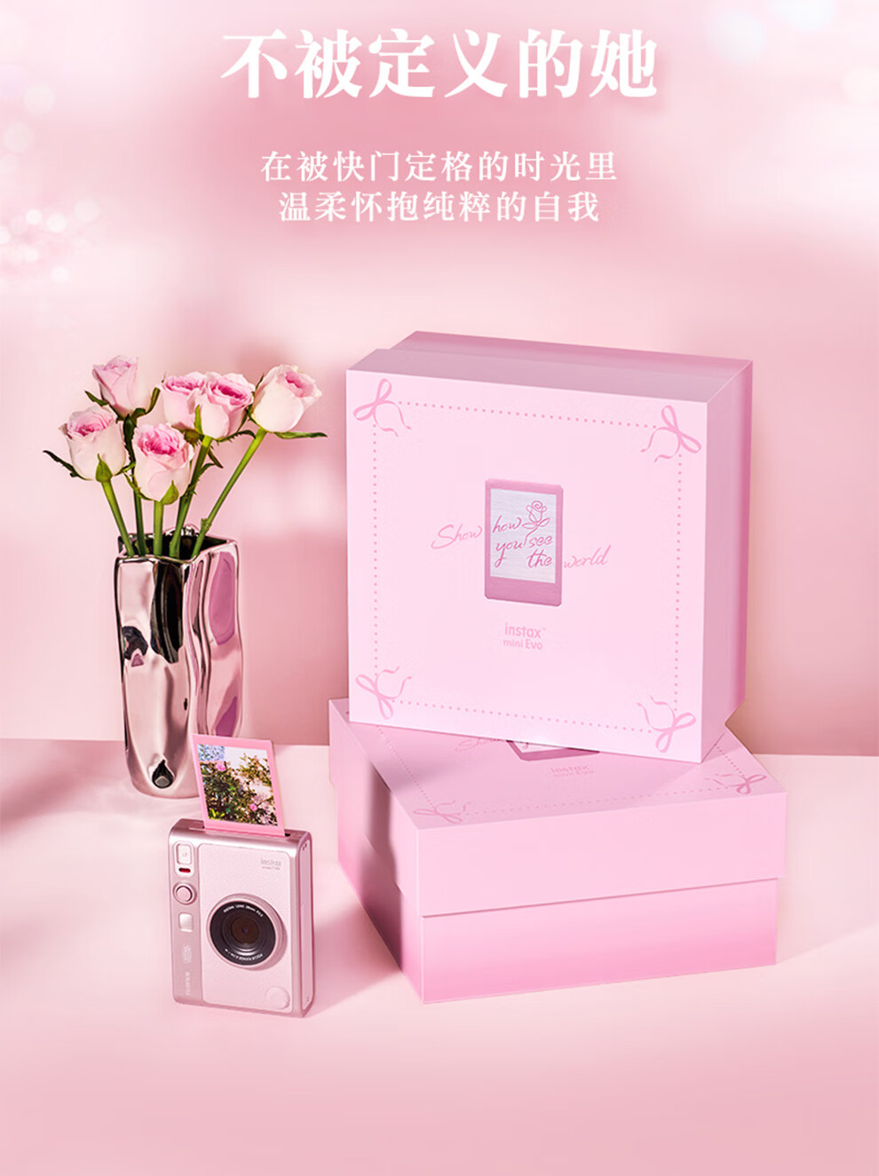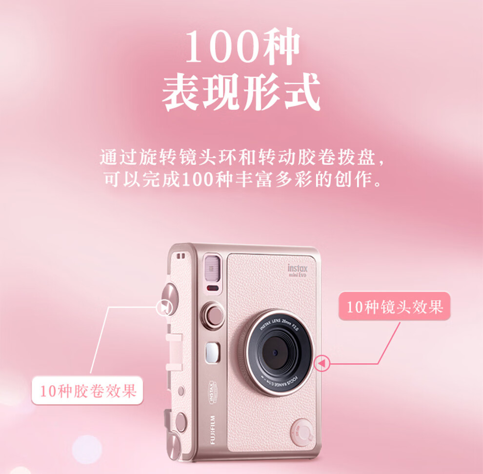 Fuji (FUJIFILM) instax mini EVO Warm Rose Gift Box Polaroid Camera Contains 10 pieces of 3-inch photo paper mini EVO Warm Rose Gift Box + Fill Light Combination Contains Photo Paper