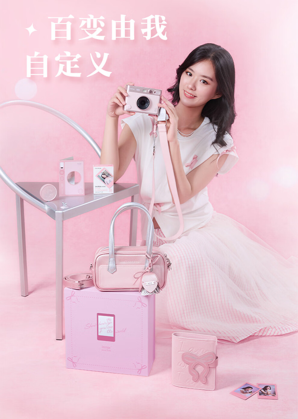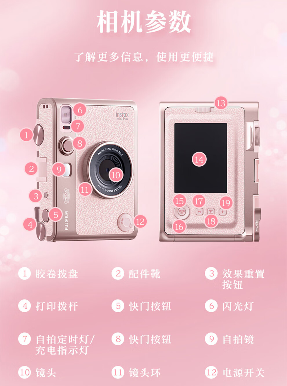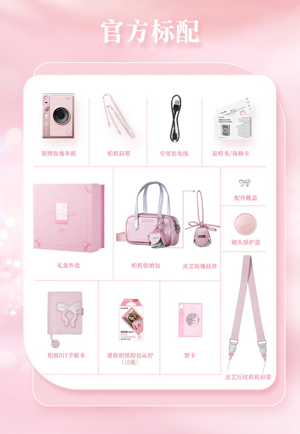 Fuji (FUJIFILM) instax mini EVO Warm Rose Gift Box Polaroid Camera Contains 10 pieces of 3-inch photo paper mini EVO Warm Rose Gift Box + Fill Light Combination Contains Photo Paper