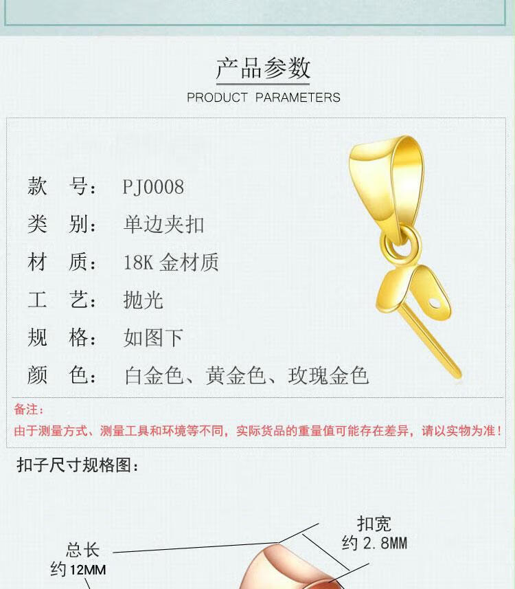 Junshi pure 18k gold jade gold buckle pendant Hetian jade Au750 gold necklace imitation gold white gold melon seed buckle white pearl straight pin buckle
