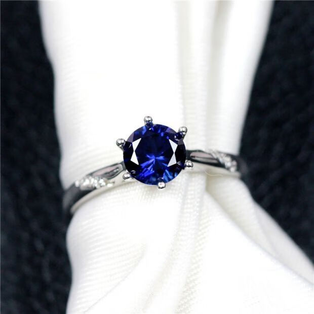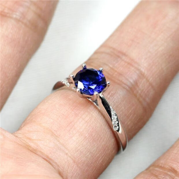 Ruoximeng 925 sterling silver tanzanite ring for women, one carat sapphire, Japanese and Korean personalized fashionable birthday gift that does not fade, sterling silver live mouth (1 carat/6.5mm) M5