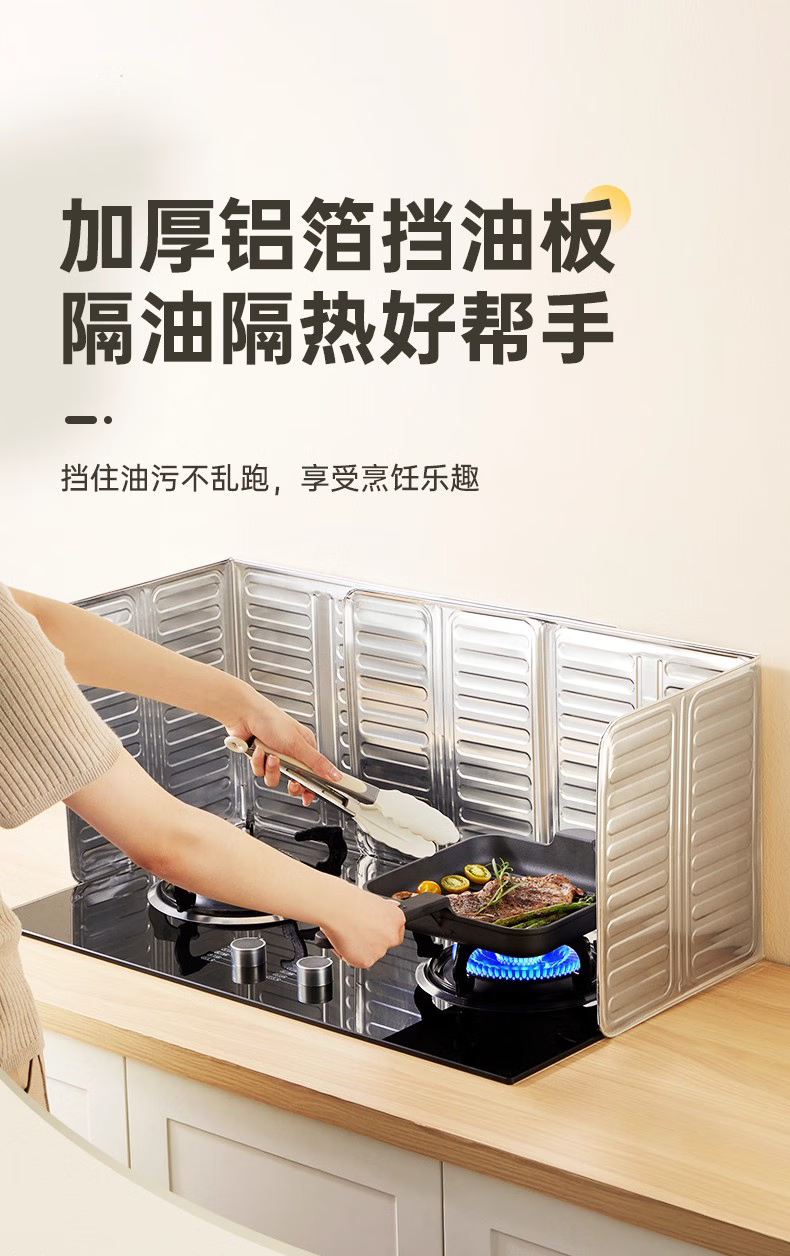 Pengyi anti-splash oil baffle kitchen oil baffle fence gas stove insulation supplies stove special aluminum foil stove insulation board 32.5*84CM 2 sheets suitable for double stoves