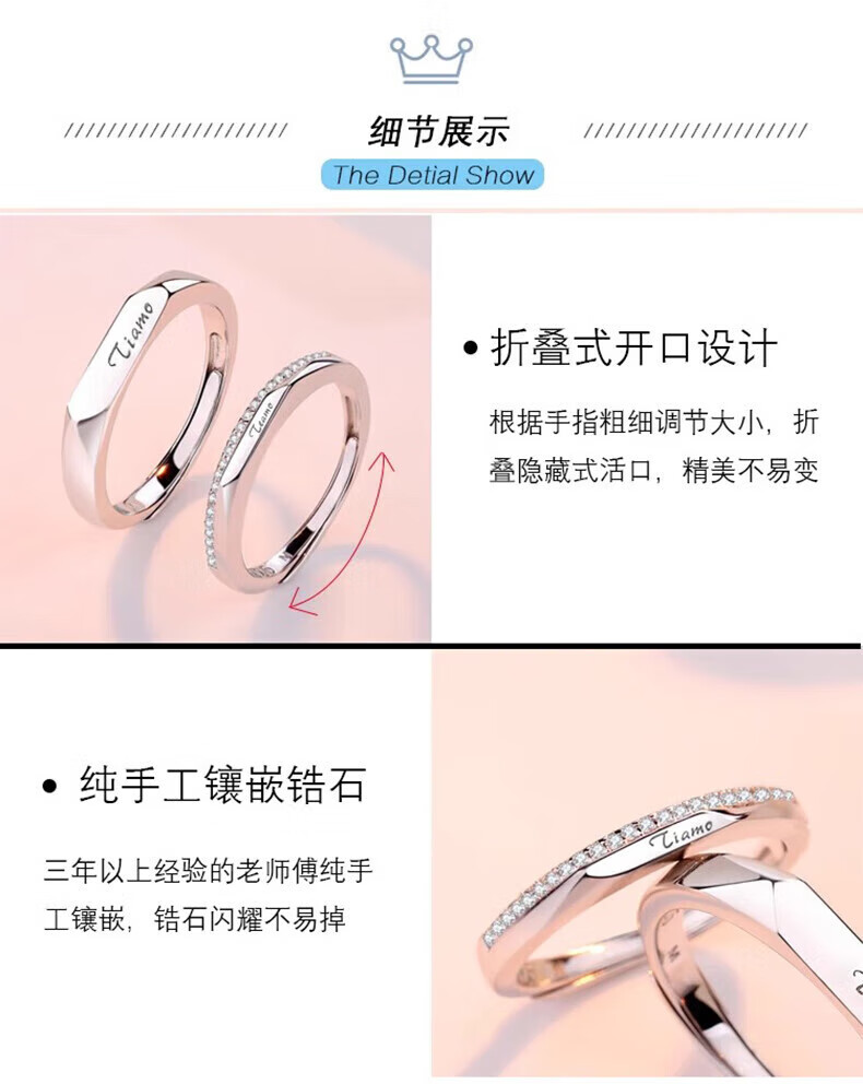 Pt950 Platinum French I Love You Platinum Couple 18k Ring Platinum Valentine's Day Birthday Gift for Girlfriend Women's - Light Luxury