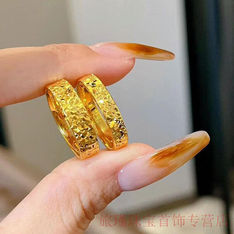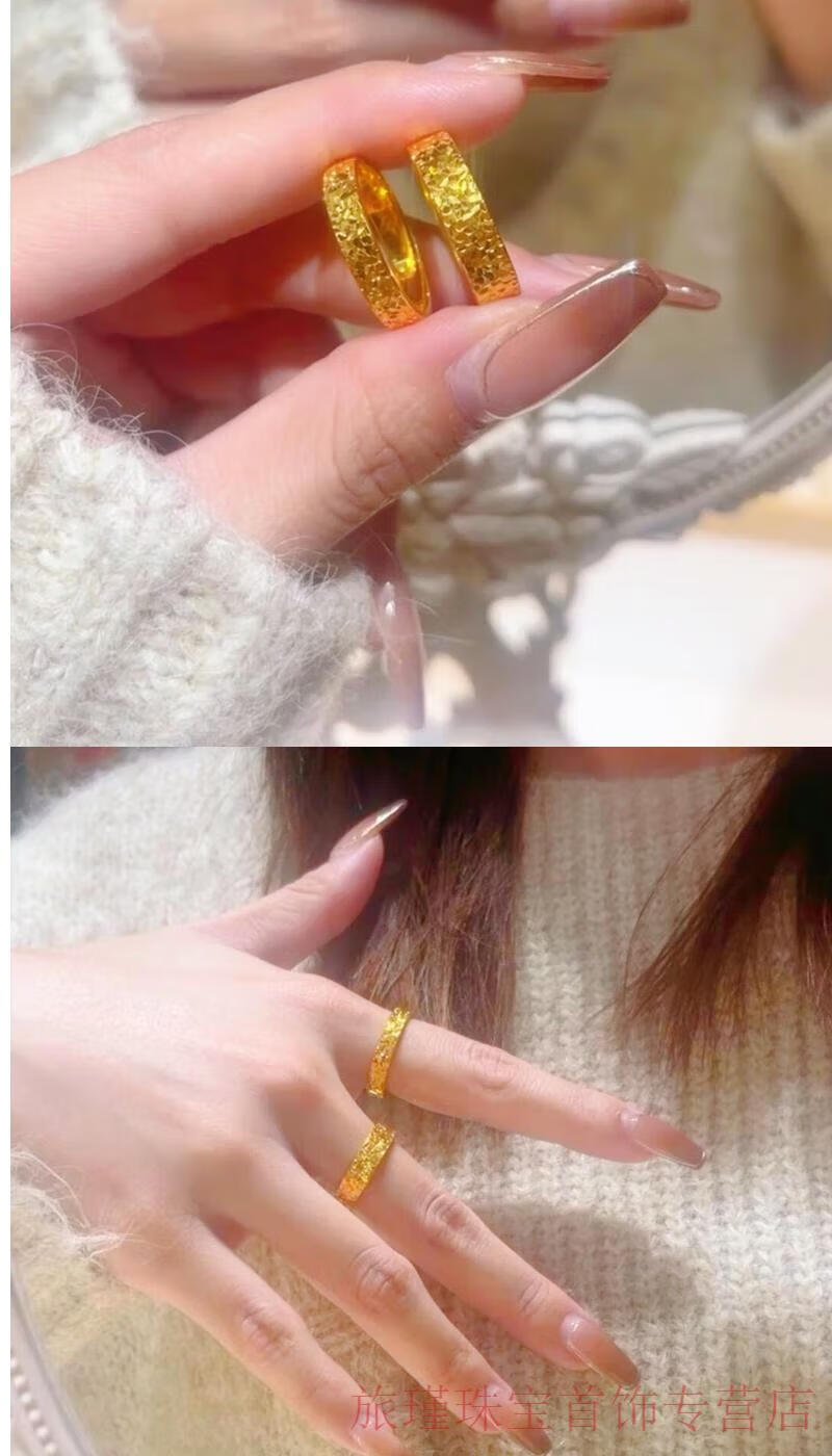 Junshi Lao Phoenix 999 Gold Crushed Ice Ring for Couples Men and Women Fashionable Imitation Gold Baby's Breath Ring Christmas 4mm Women's Model (No. 7) Same Style