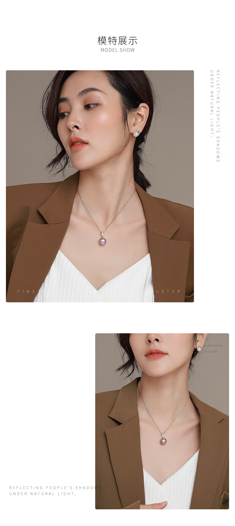 Stone Pigeon Tilt S925 Silver Freshwater Nucleated Pearl Pendant Purple Single Round Edison Pendant Gold Holder Pink Purple 13-14mm