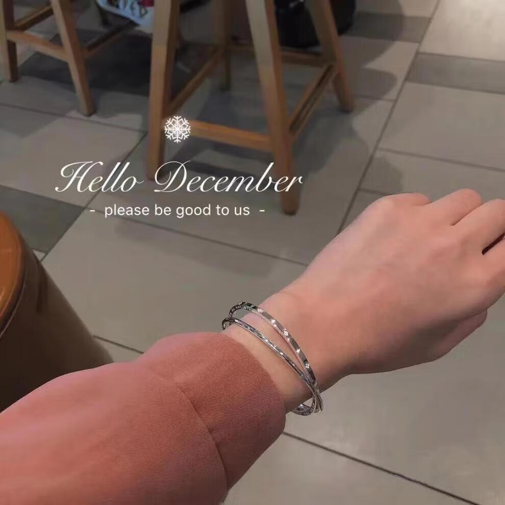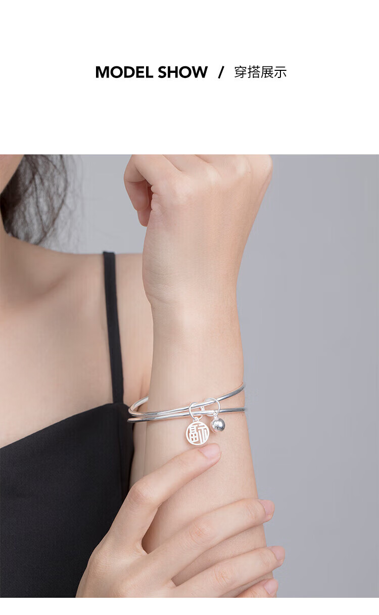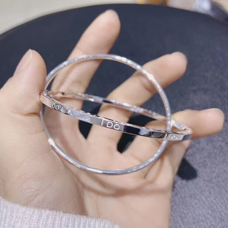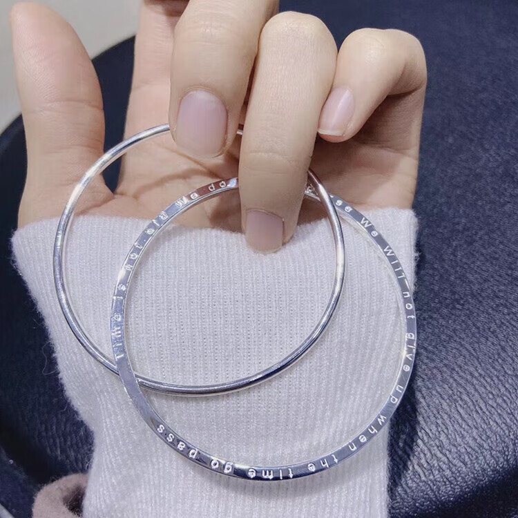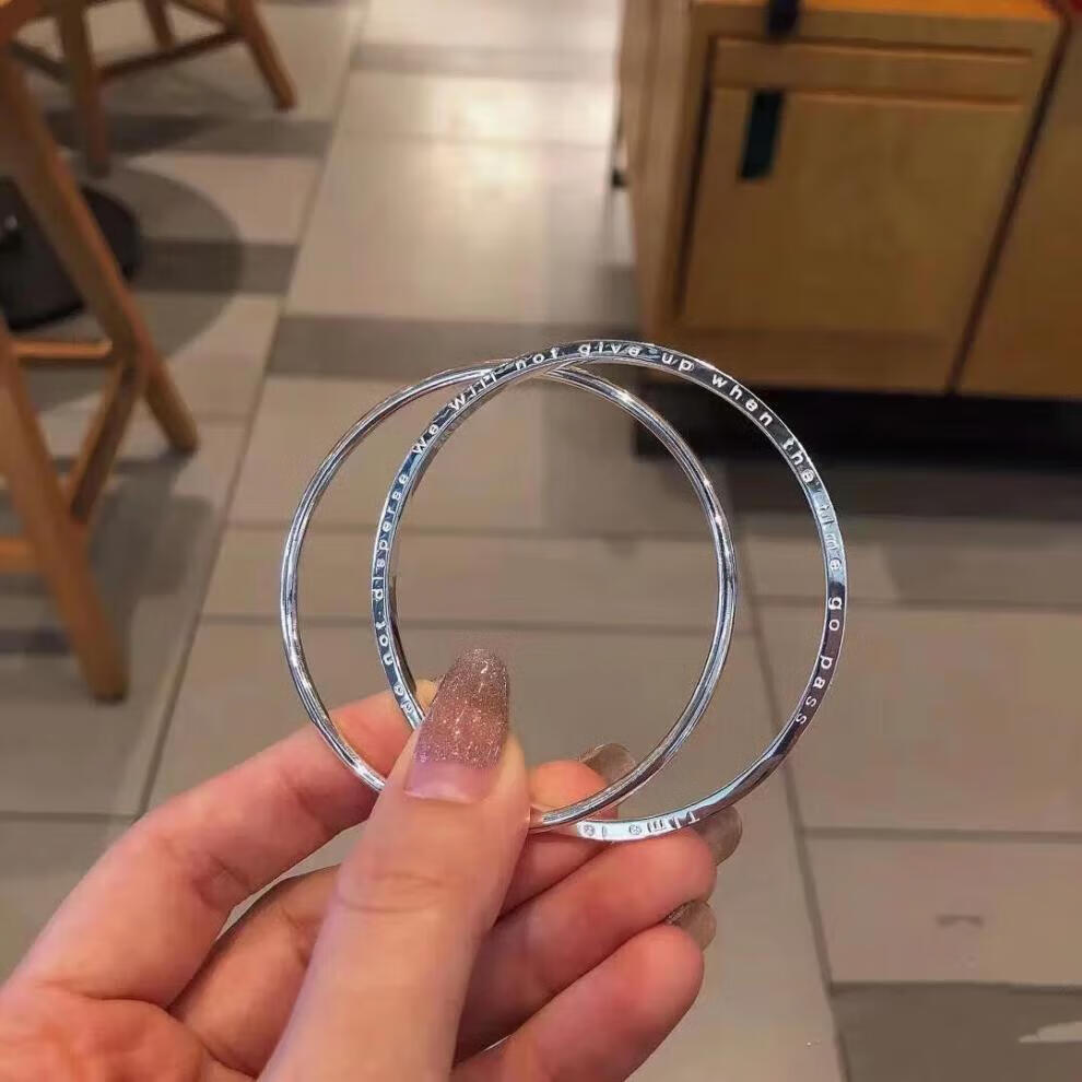Xingyin double ring four-leaf clover pure silver S999 sterling silver bracelet women's glossy solid closed silver bracelet young four-leaf clover double ring 64mm