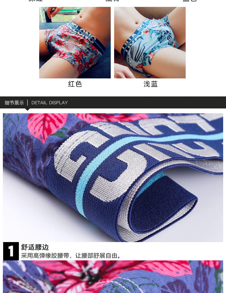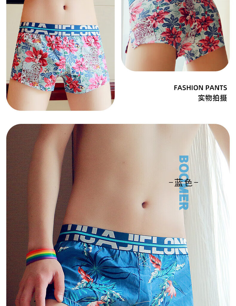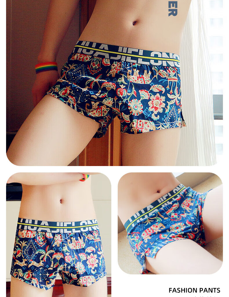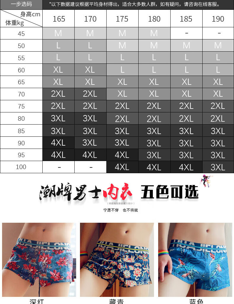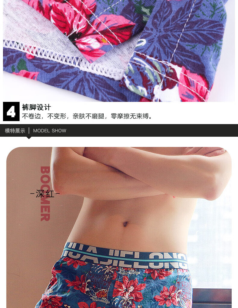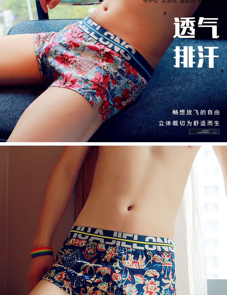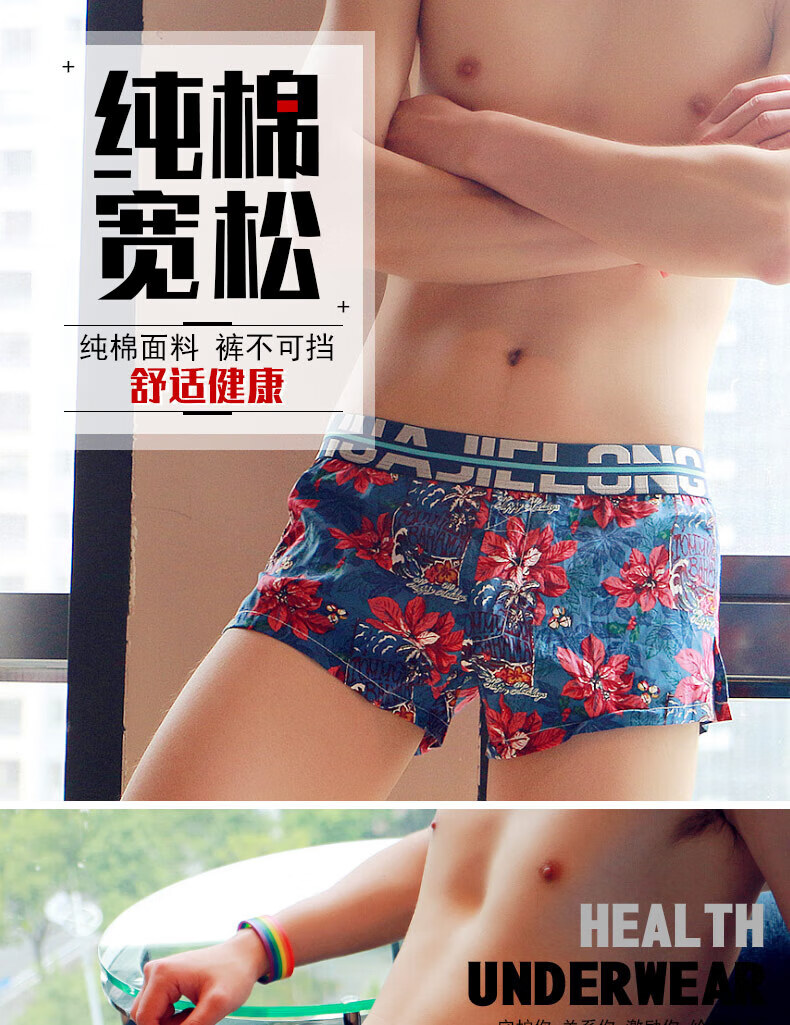 Modal men's underwear, men's pure cotton loose Aro pants, summer four-corner comfortable printed trendy sexy large size boxer shorts, dark red + navy + red 3 pairs M80-100Jin Jin equals 0.5 kg