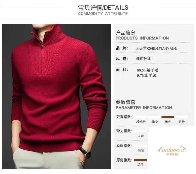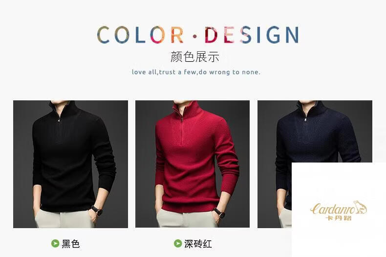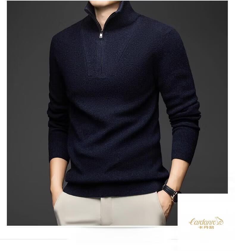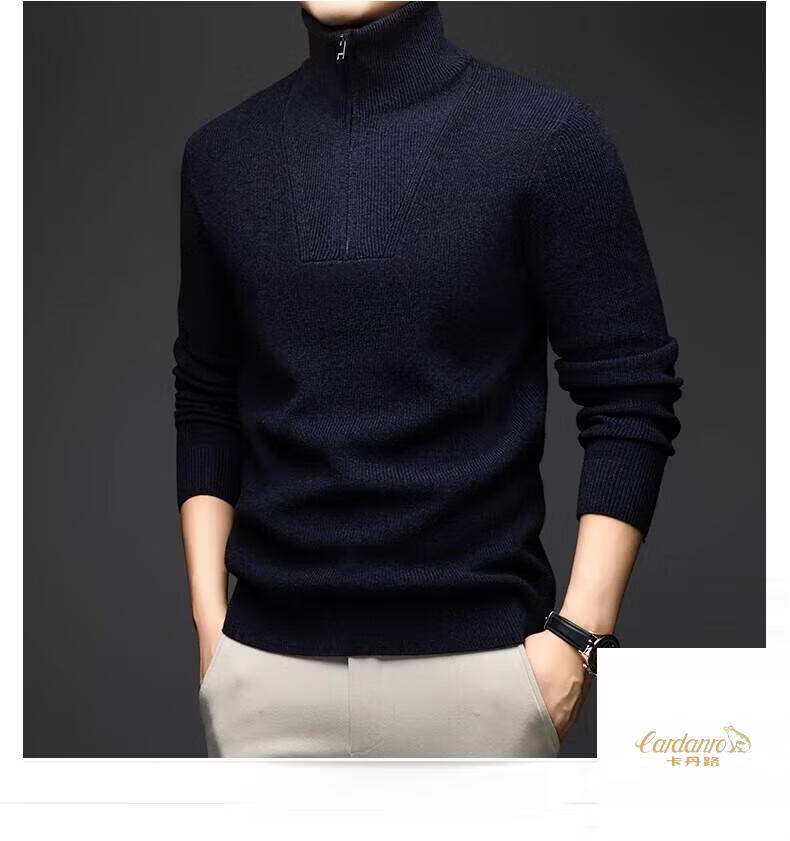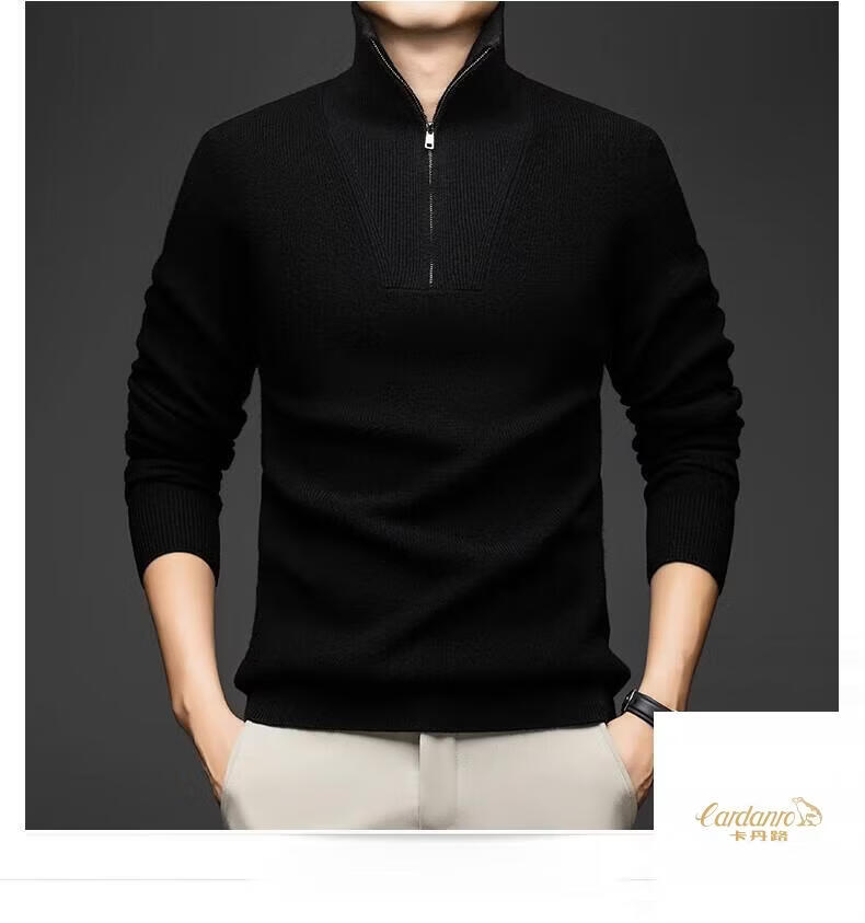 CARDANRO men's high-end luxury brand high-end cashmere cardigan men's sweater thickened winter knitted bottoming shirt black M