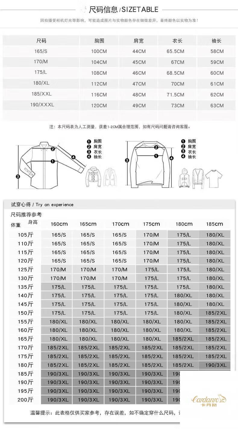 China (cm) 165 / 88-90 170 / 96-98 175 / 108-110 180 / 118-122 185 / 126-130