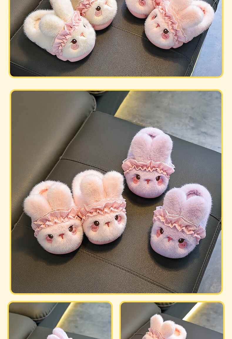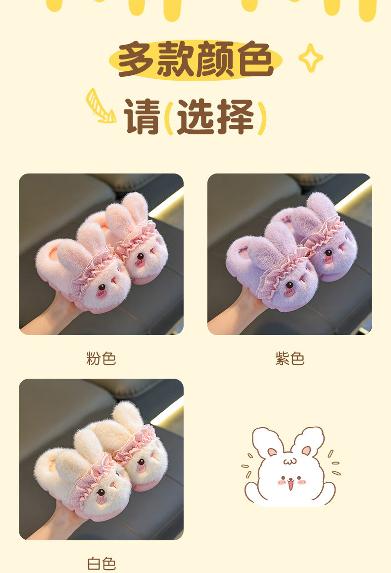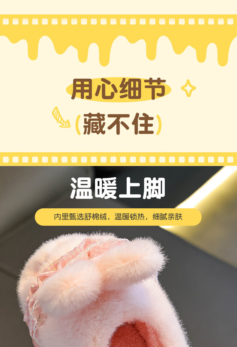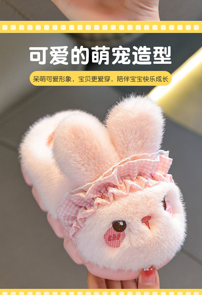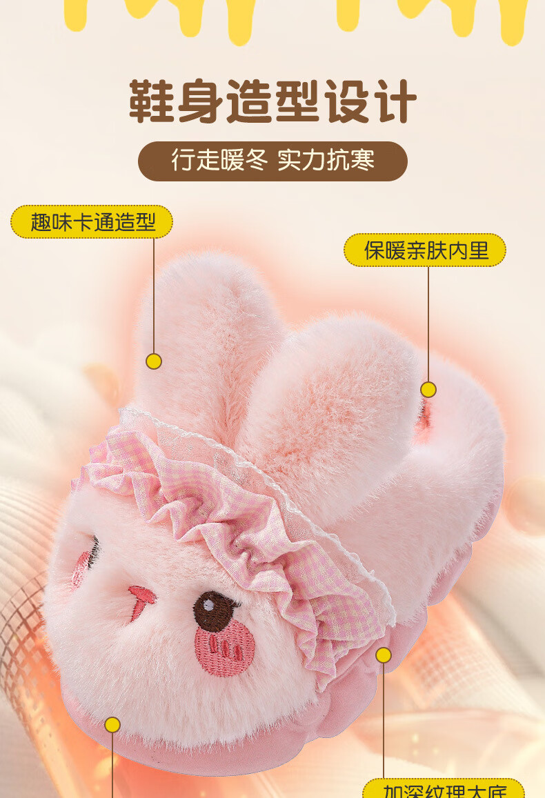 COSMICKISS children's cotton slippers to keep warm in winter, girls plus fluffy parent-child thick soles at home, small children's bags and baby cotton shoes, white slippers - size 26/27 - shoe inner length 16CM (not including heels)