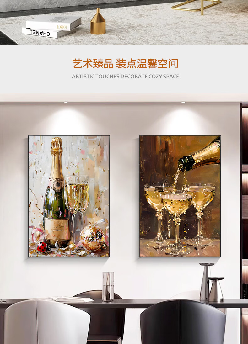 Yun Xiange restaurant decoration painting light luxury wine glass dining table hanging painting sideboard high-end dining room wall mural simple living room painting A 140*210 modern black (aluminum alloy brushed picture frame) original color high-definition nano giclee (professional oil canvas from the Academy of Art)