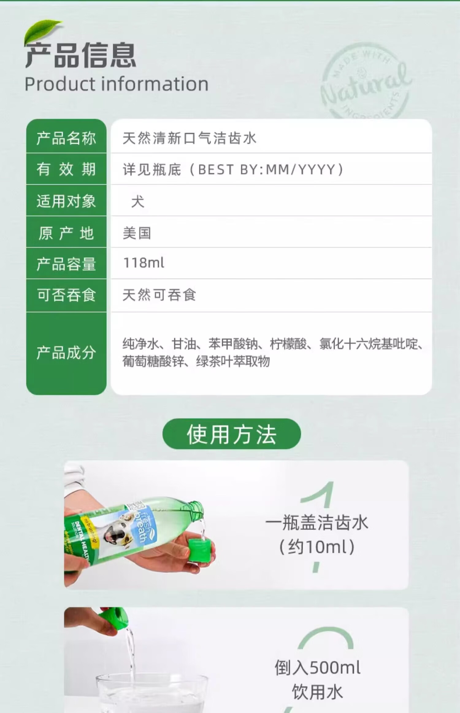 Teeth cleaning water for cats and dogs, mouthwash for removing tartar, deodorizing and deodorizing, edible mouthwash for pets, mouthwash for dogs 118ml