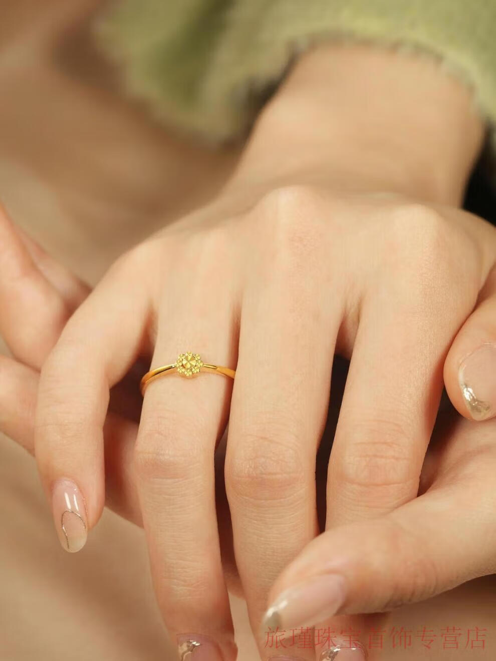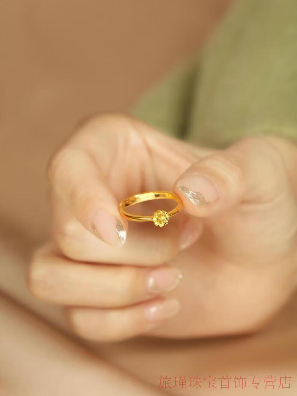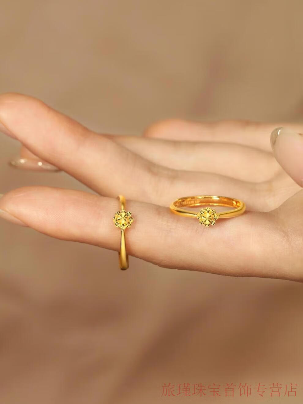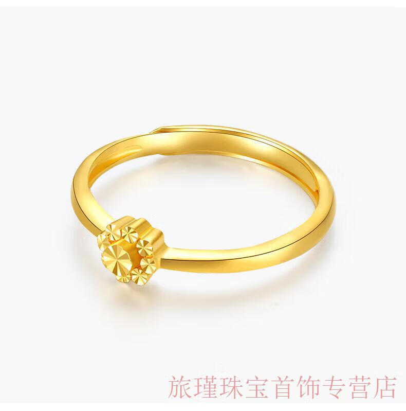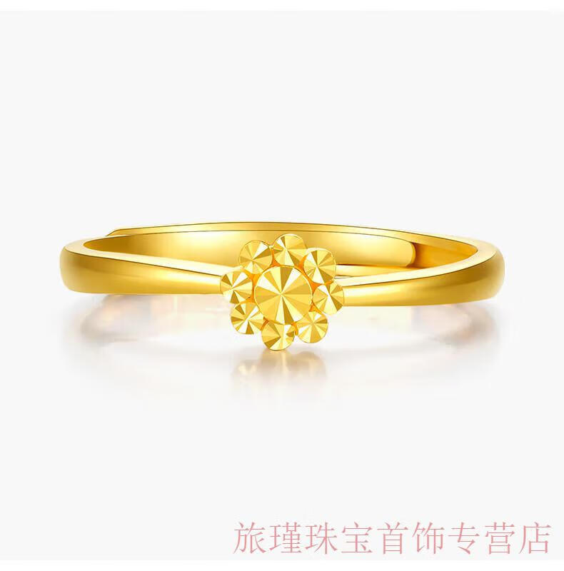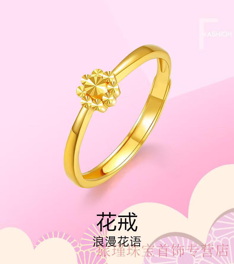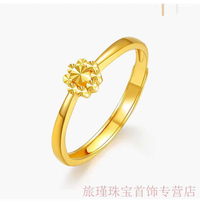 Jun Min Lao Phoenix 999 gold flower ring women's ring opening adjustable tail ring hand decoration imitation gold birthday gift design